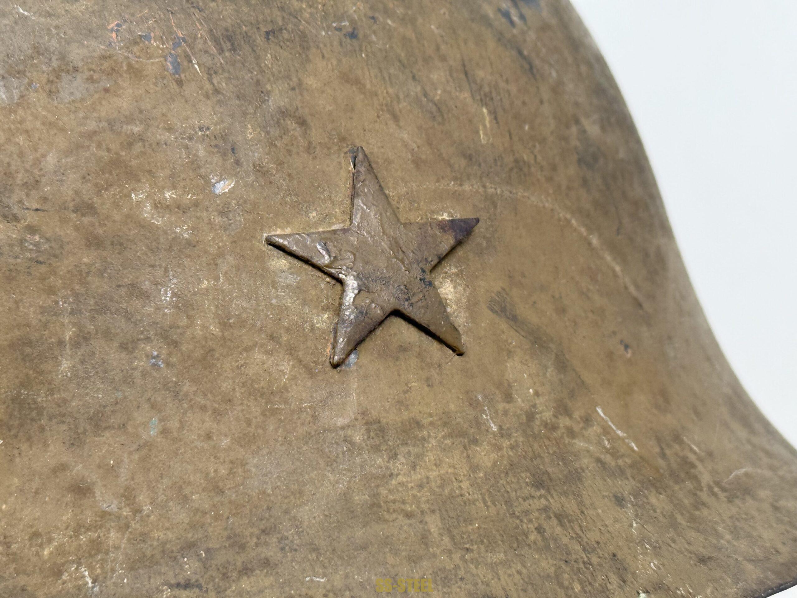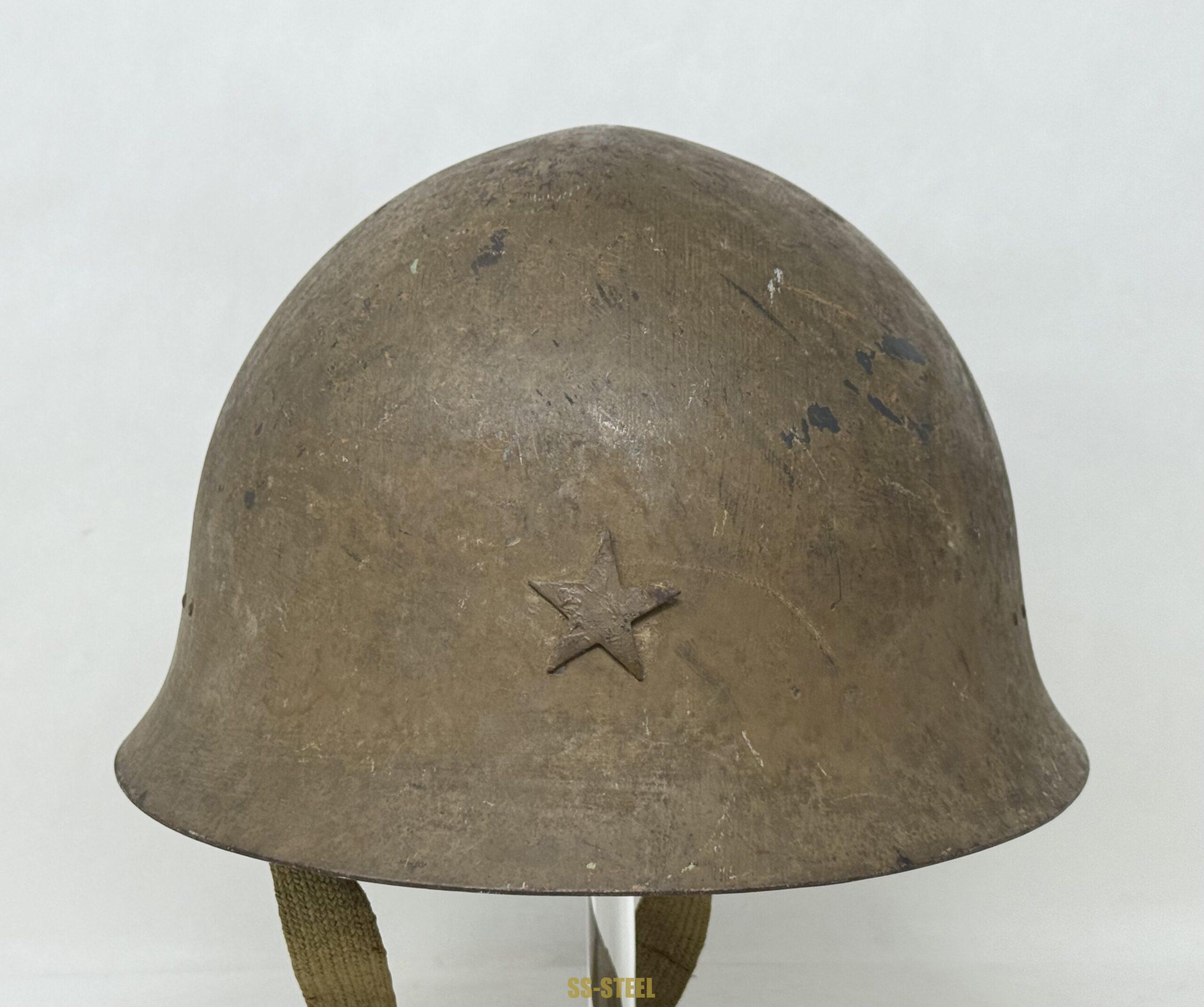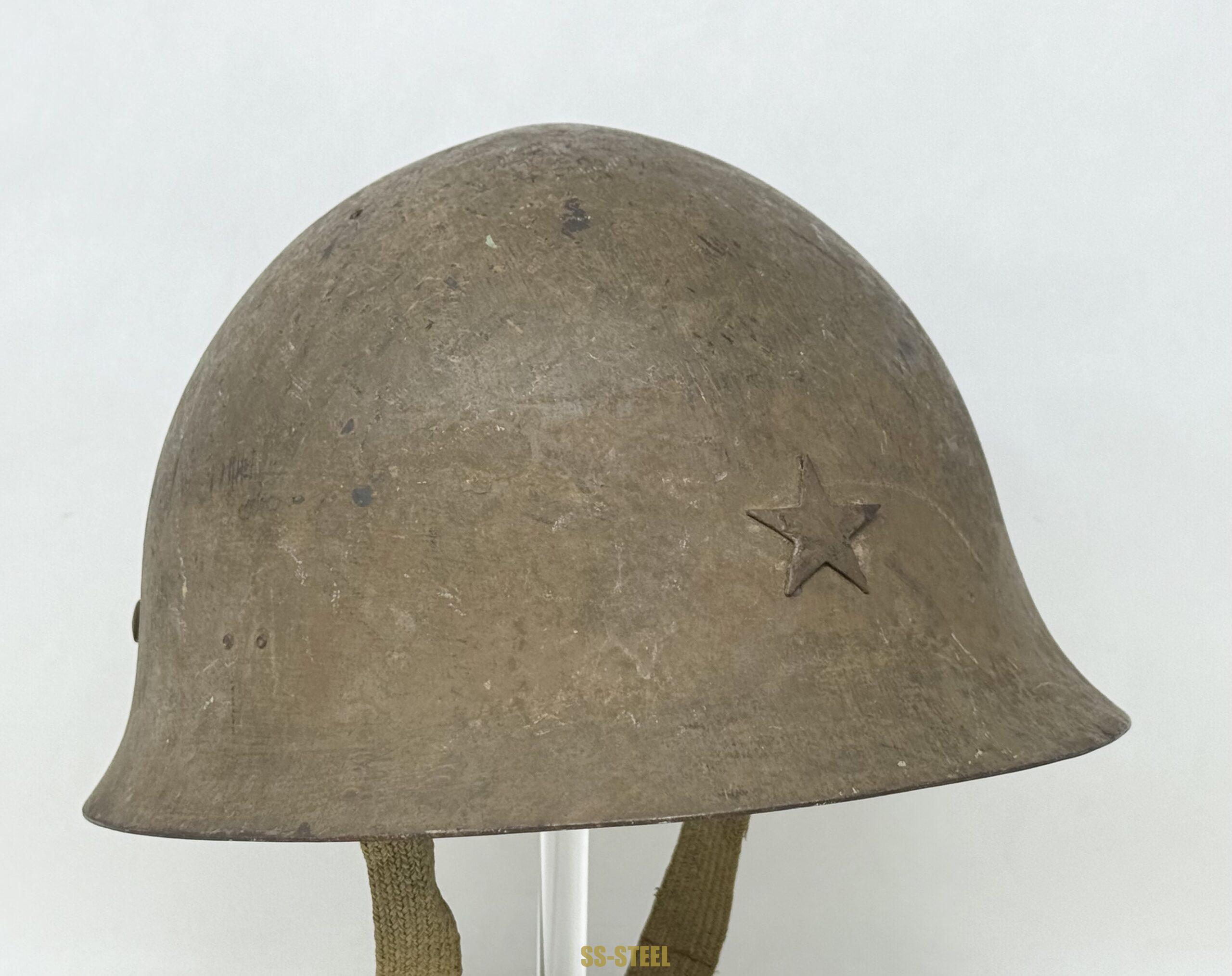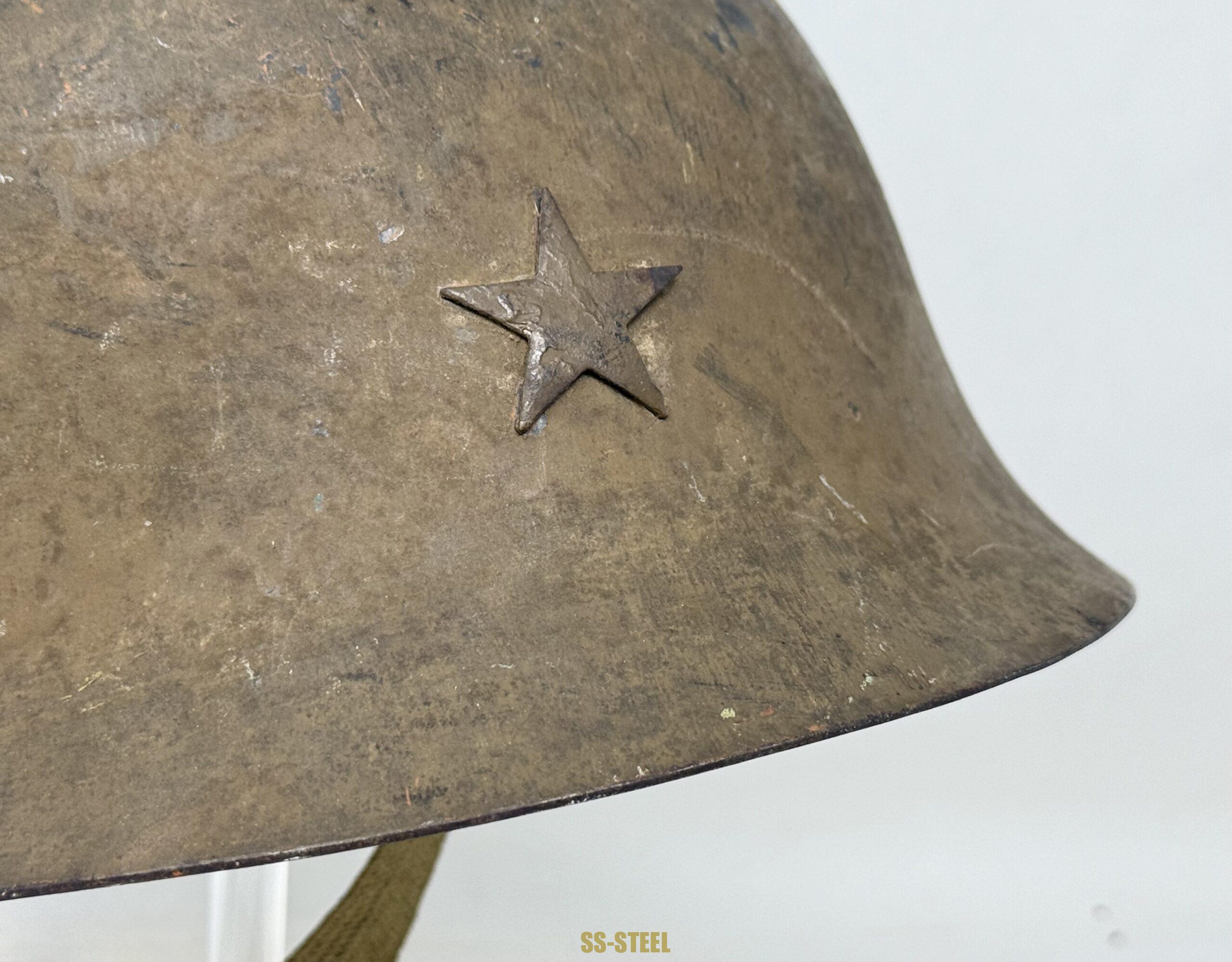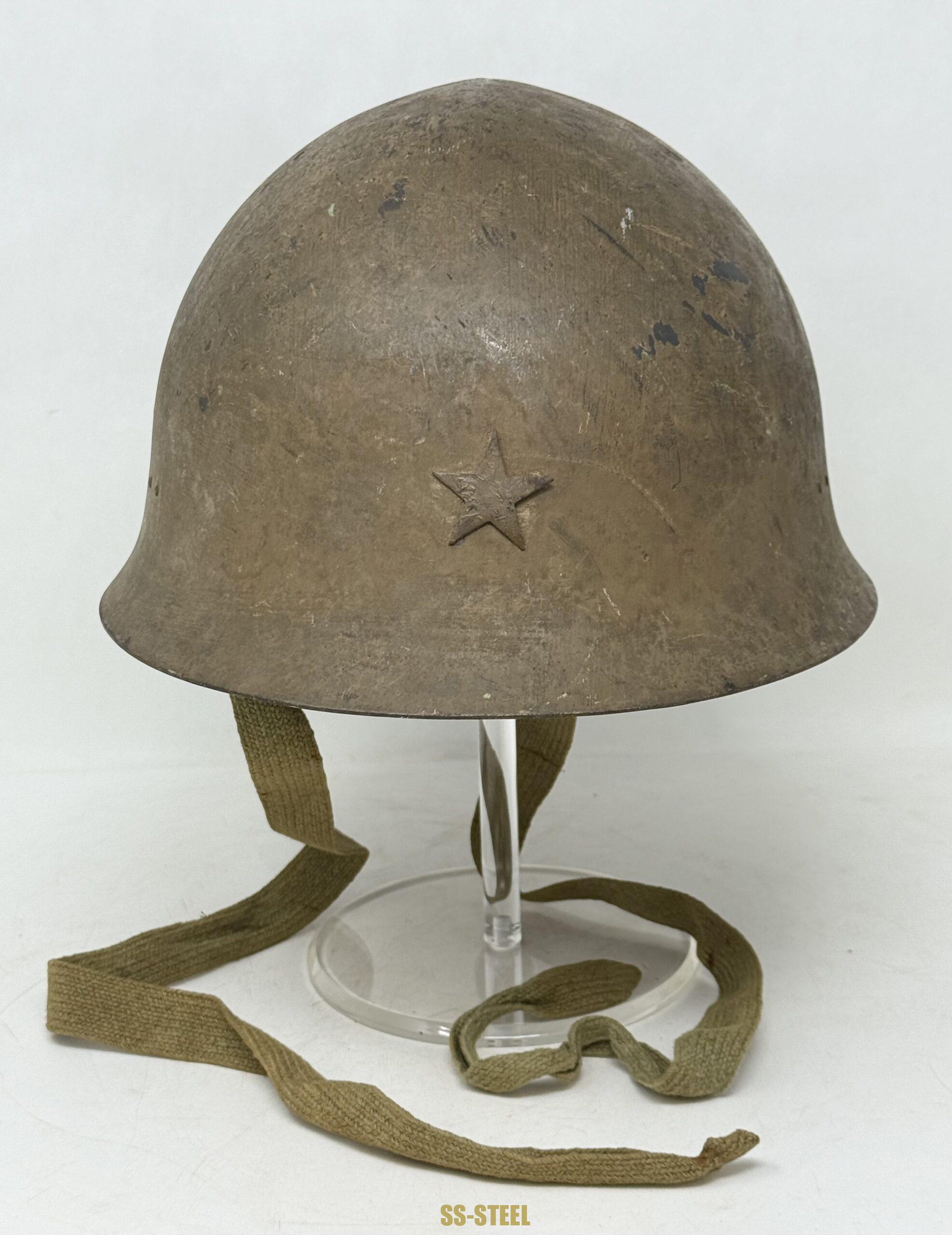 Japanese Type 90 Army helmet. Helmet is a fantastic example of an untouched type 90 from the woodwork out of upstate NY. Helmet features nice tan paint finish complete with original untouched liner and chinstraps with a Japanese character in rear skirt. Choice edition to represent the Pacific Theatre collection. COA accompanies.
