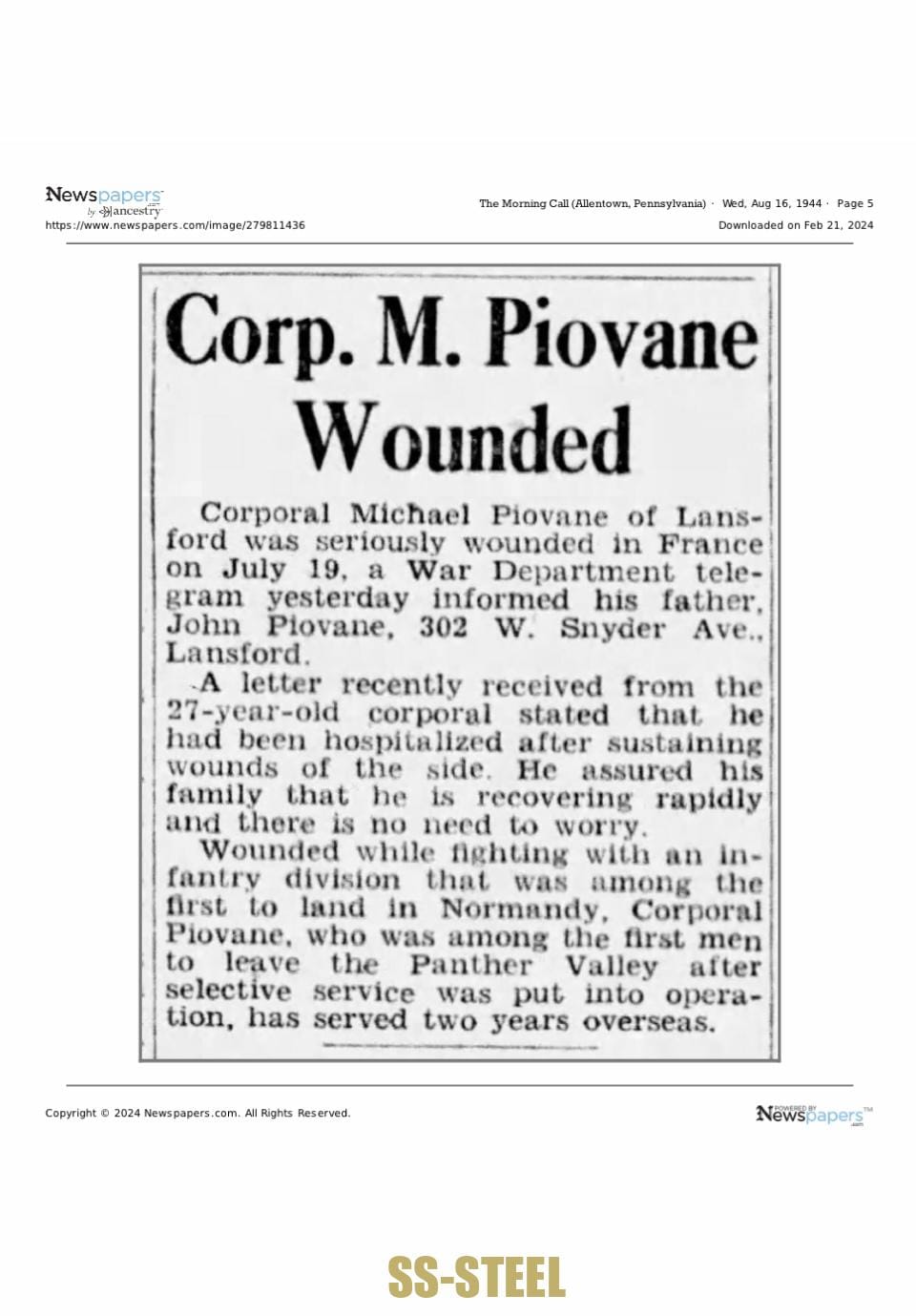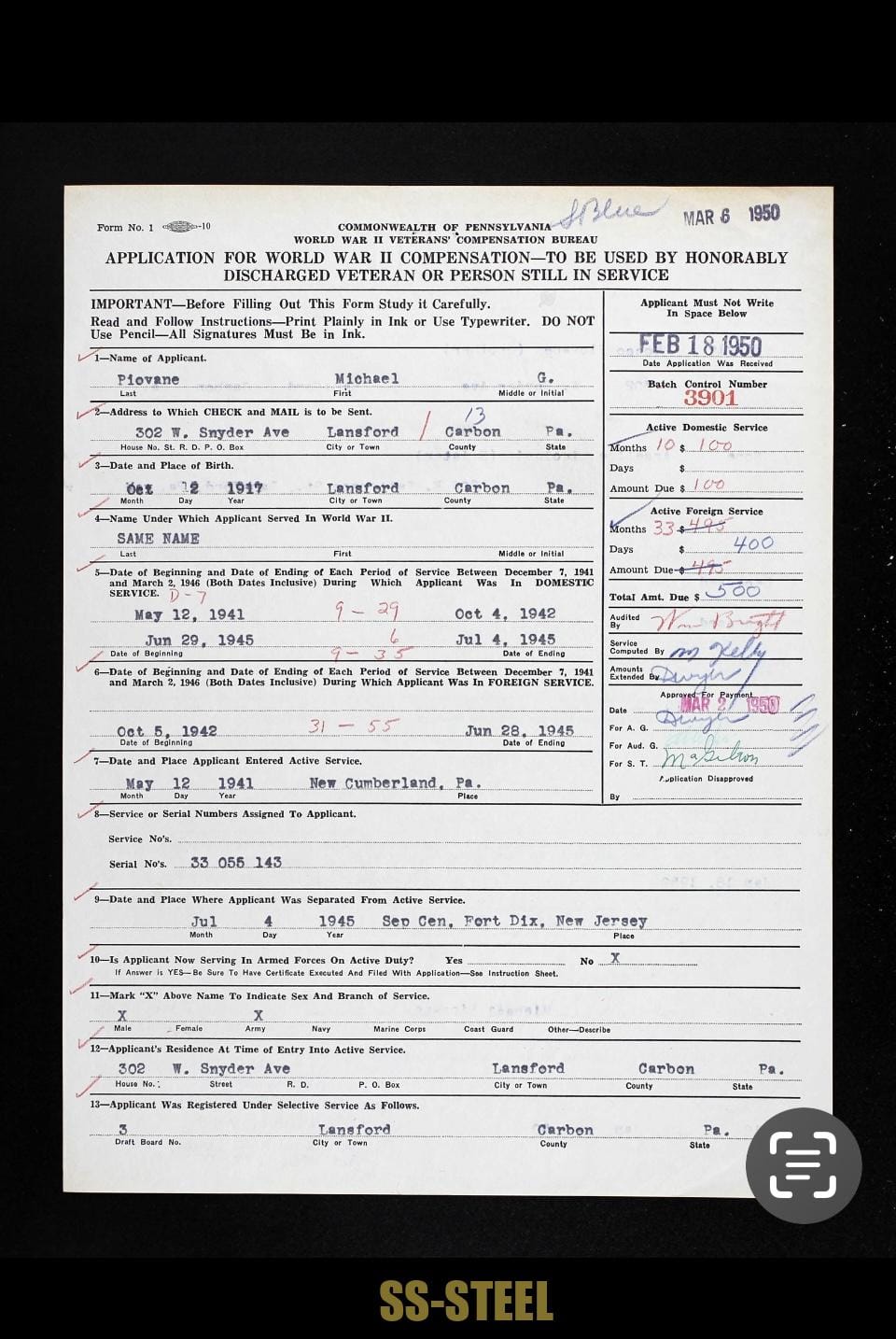 Here is a fantastic US veteran trophy helmet and grouping, direct from the family of T/CPL Michael Piovane, who served with the 29th division and also was a recipient of the Purple Heart. Helmet features fine artwork and locations the unit served in. The helmet itself is in fantastic condition complete with untouched original liner and chinstrap. It is an M42 helmet by NS size 66, batch number D343. Also included is the veterans uniform, equipped with service ribbons and the iconic 29th division patch. This was kept by his family for decades since the war, and is now available on the market. COA accompanies.