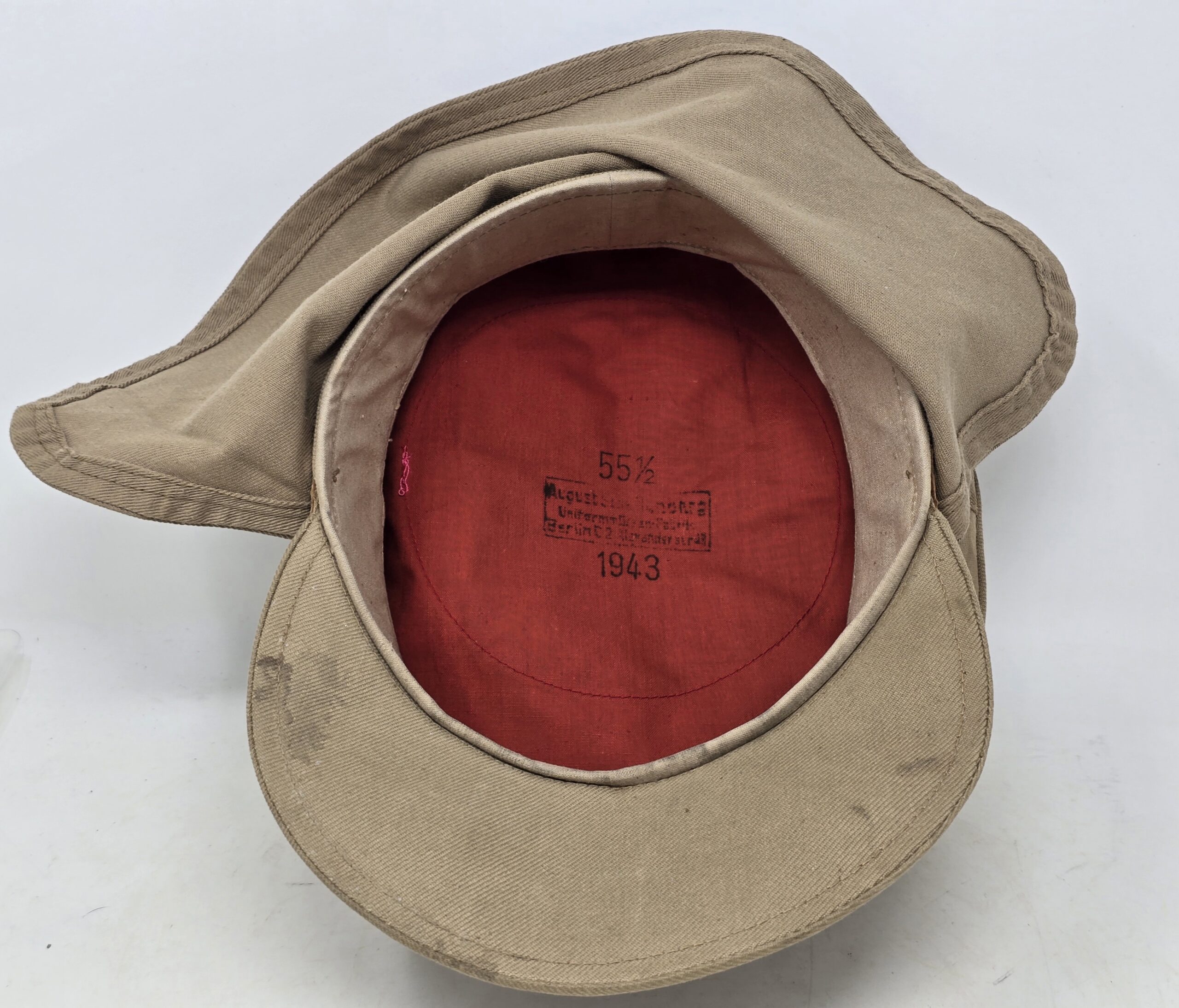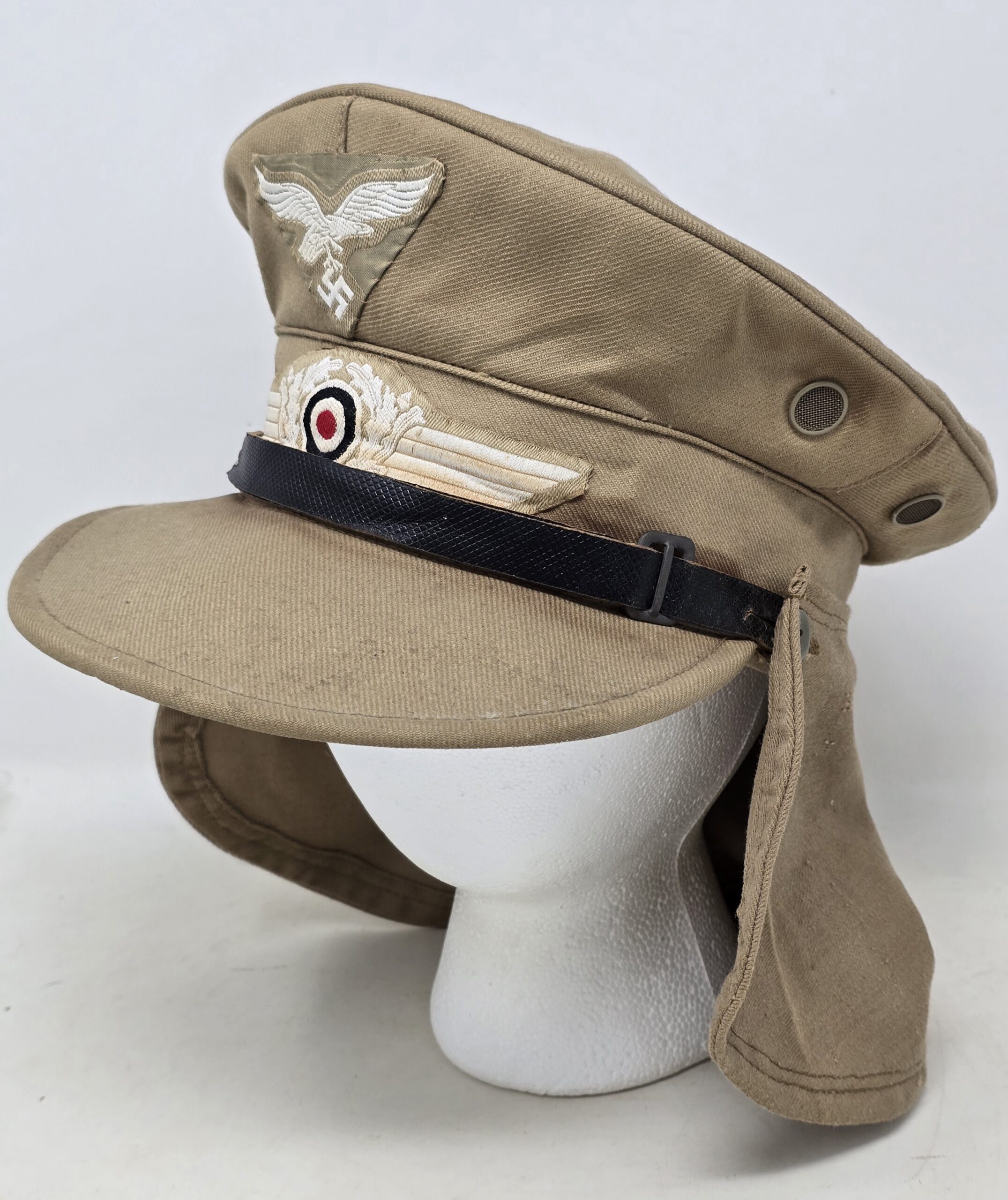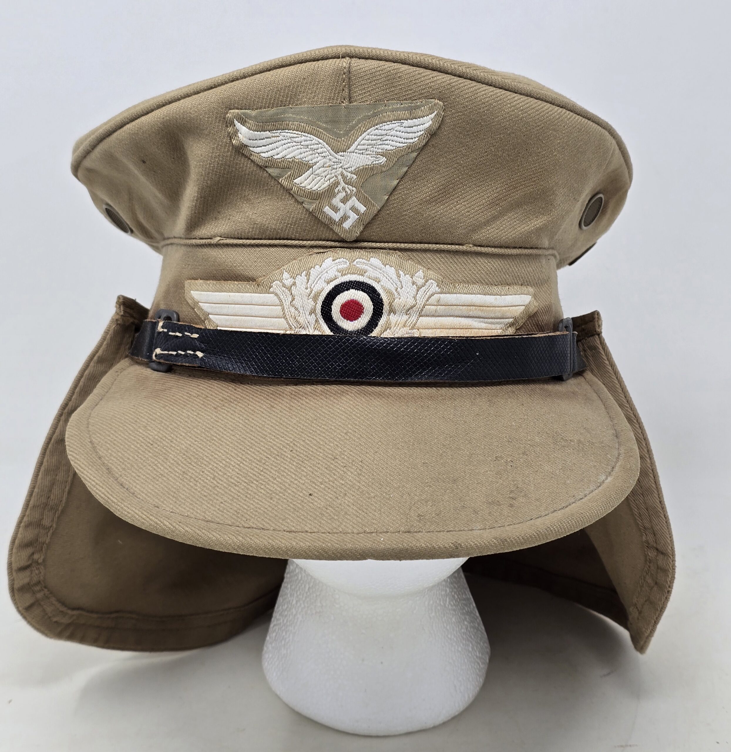 This is a nice, minty condition Luftwaffe Tropical headgear, commonly referred to as the “Hermann Meyer” cap. From a very long time collection, this one is complete with the dust flap, all buttons are mint, as well as the black leatherette chinstrap. All indications are that it was either not worn, or worn very lightly. The markings are exceptional and vivid, and overall the condition shows just some mild age-soiling overall, giving a very desirable appearance. COA accompanies.