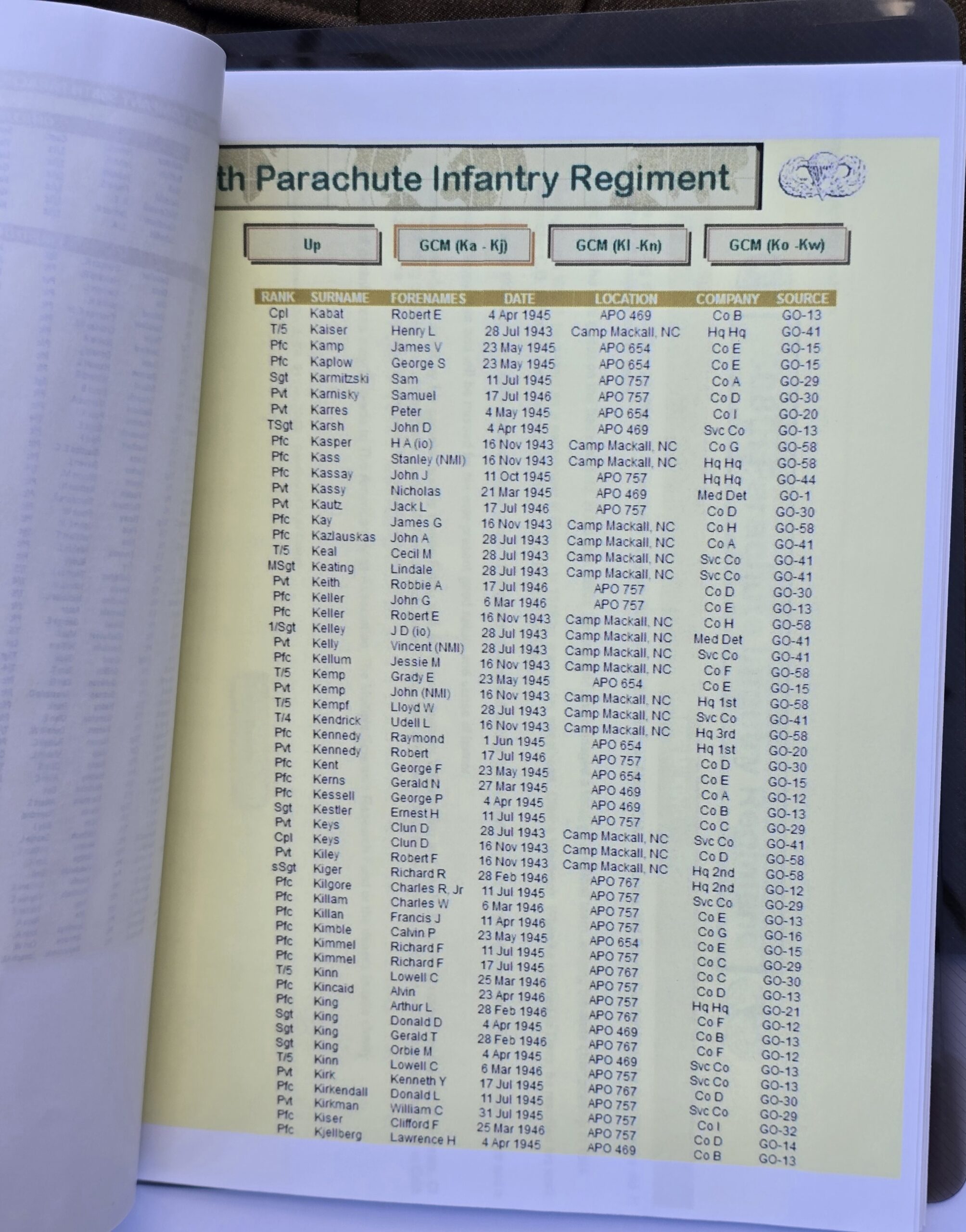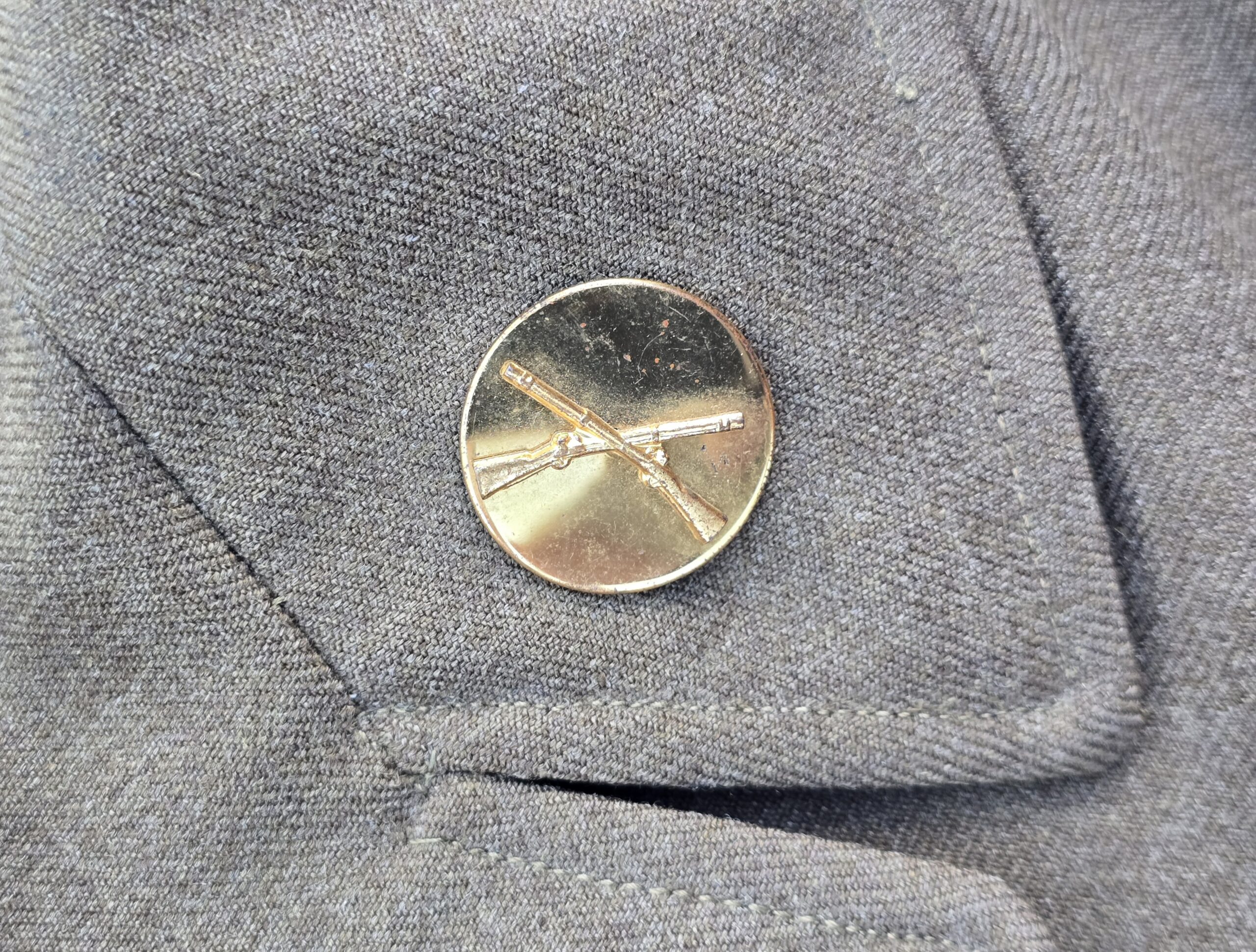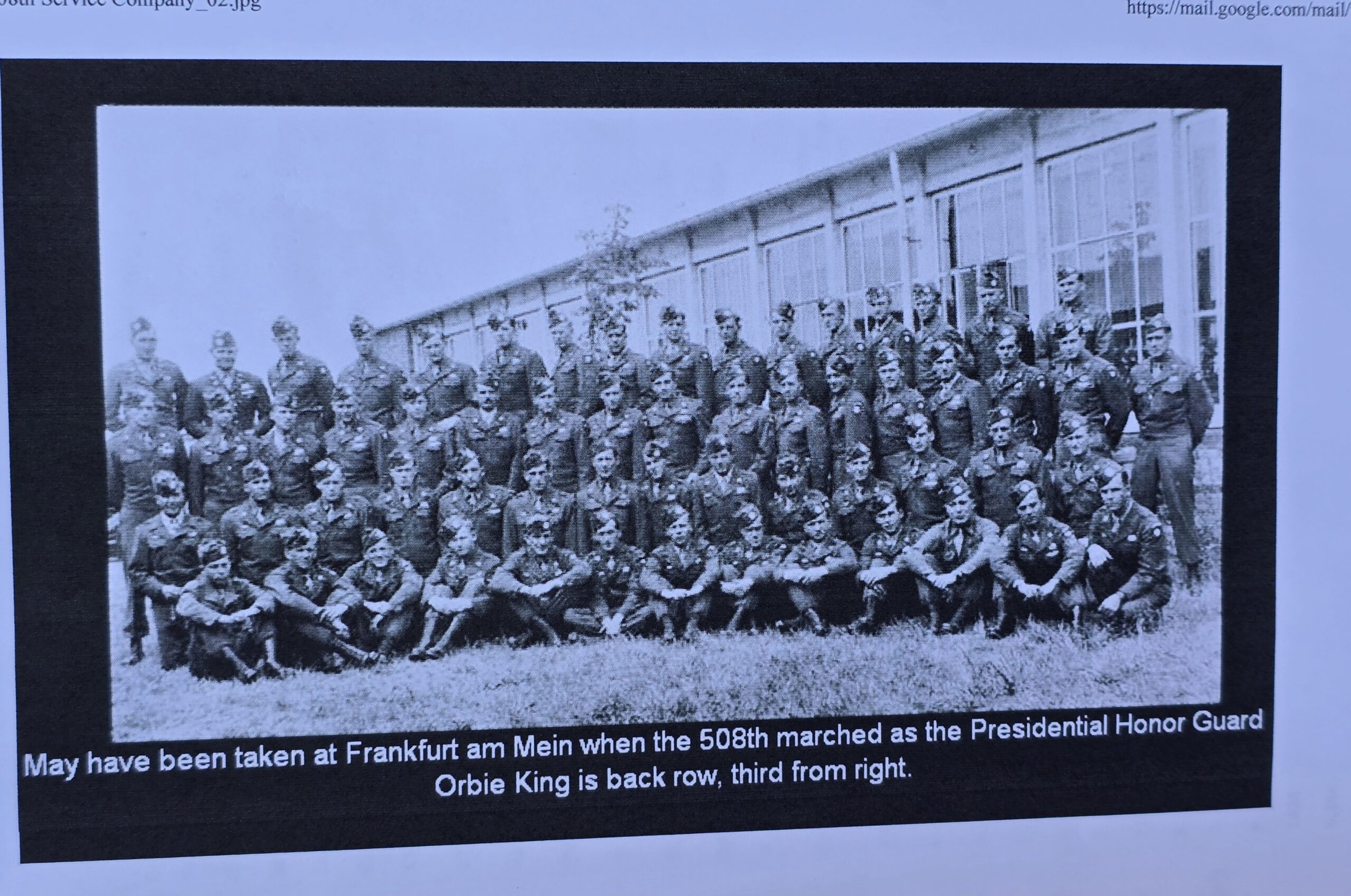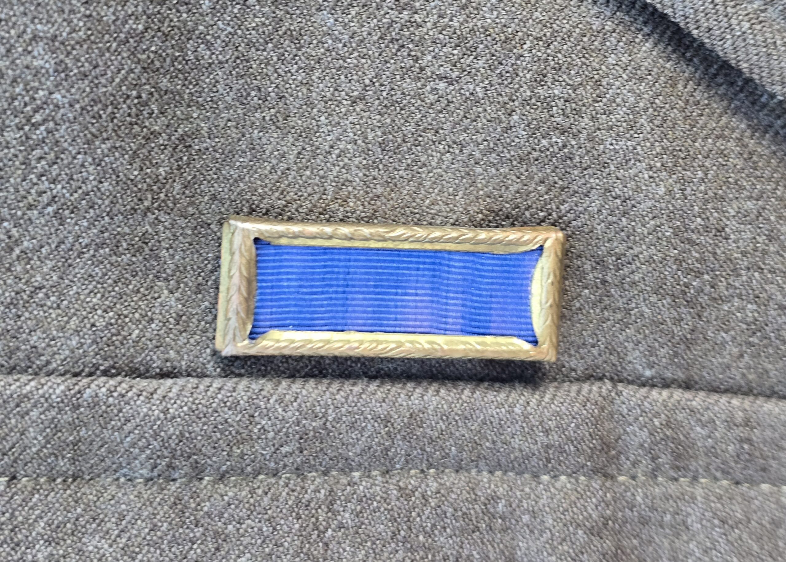 This outstanding piece has the full history of its former owner, Sgt. of Infantry Orbie M. King, service company, 508th PIR. The jacket is a large size standard Ike, with a fine original-sewn 82nd Abn Div patch on the left sleeve, jump wings, CIB–and along with Orbie’s campaign stars, an arrowhead, signifying probably a combat jump. On the lower left sleeve are his combat bars and one stripe for 2 years’ service. His last initial and last 4 of his service number are stamped inside the back of the jacket. Overall a very sharp and historic artifact of one of the brave 508th troopers. COA accompanies. (also included the complete compendium of King’s service information.)