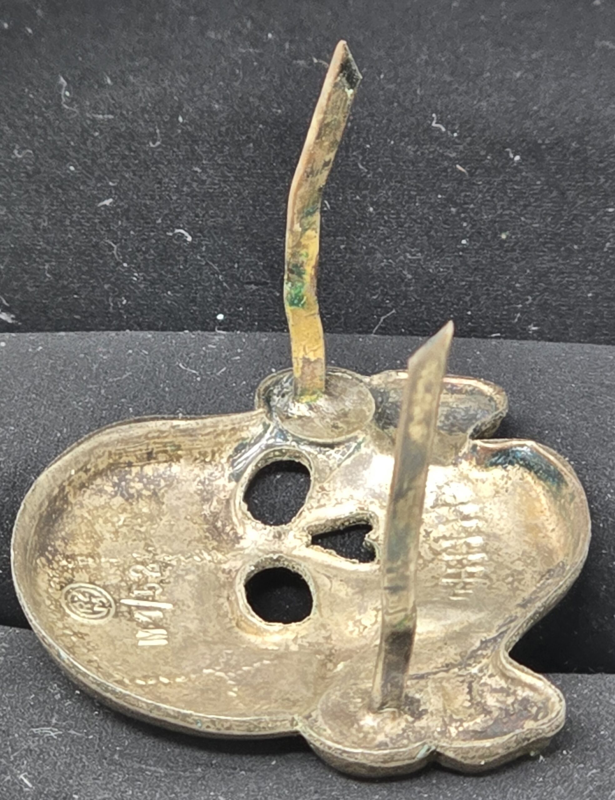 This is a superb tombak Deschler skull, M1/52 marked, prongs fully intact and strong, beautiful finish. It shows a great patina, and is untouched. A fine piece, great for the collection. COA accompanies.