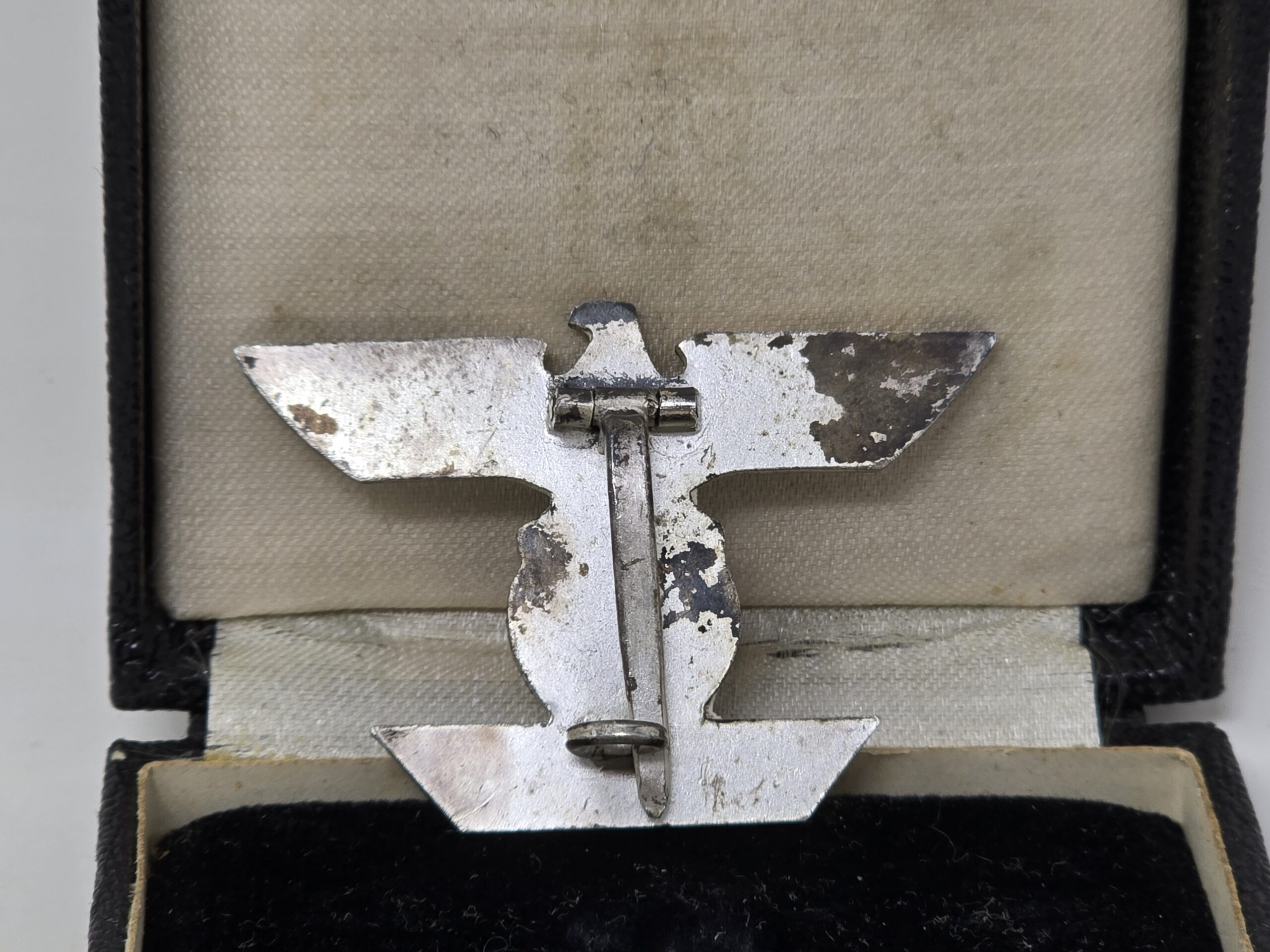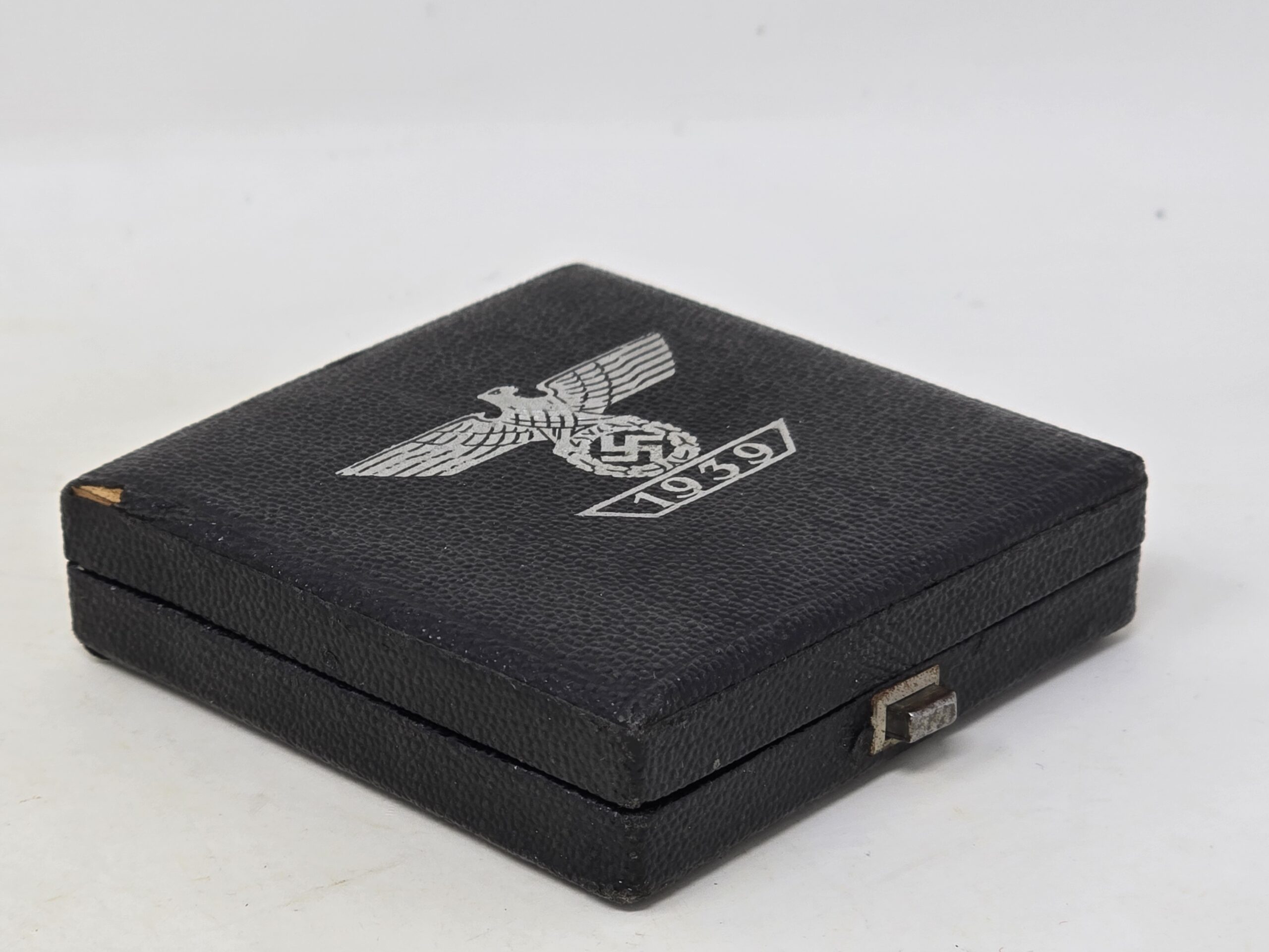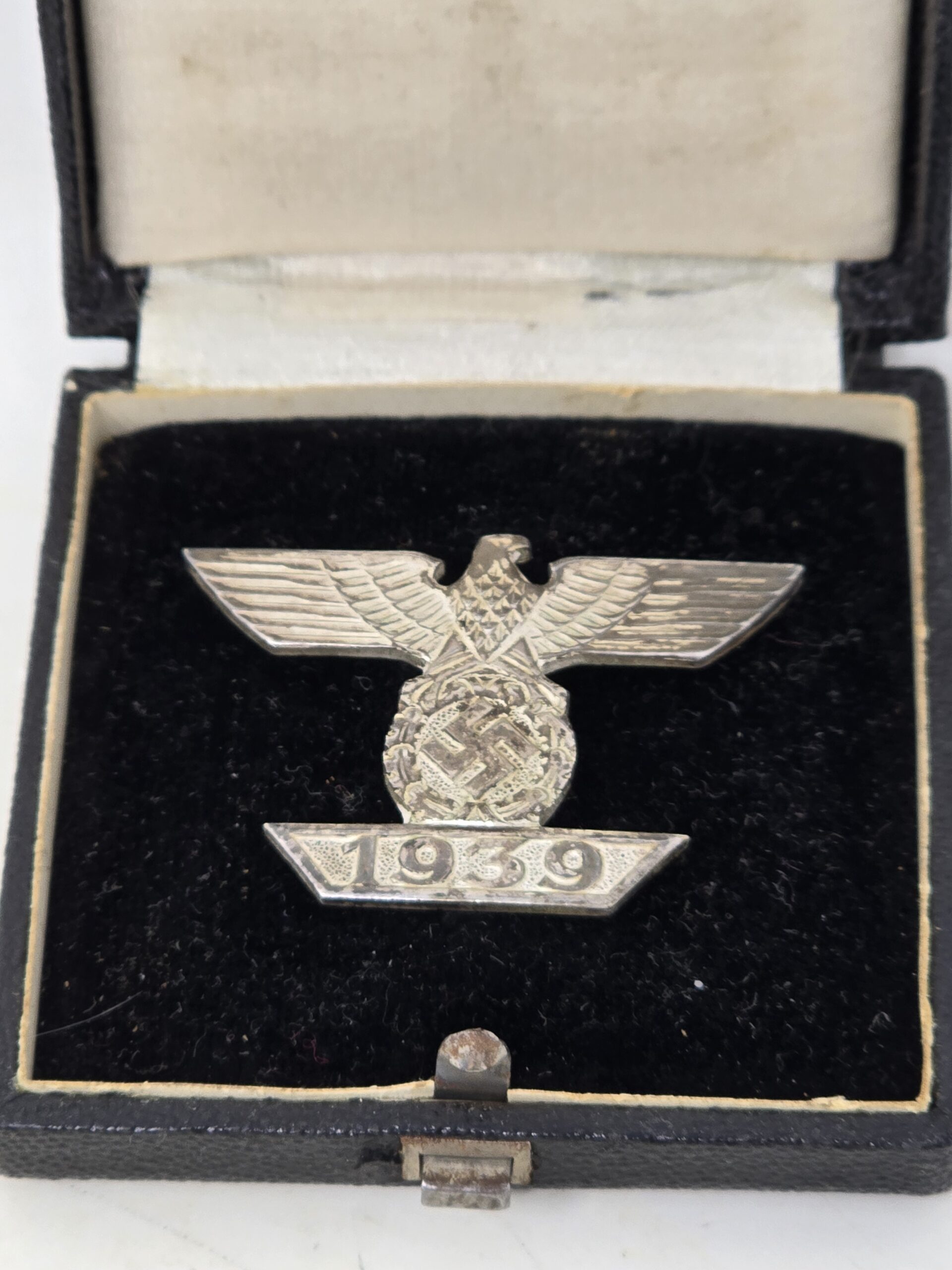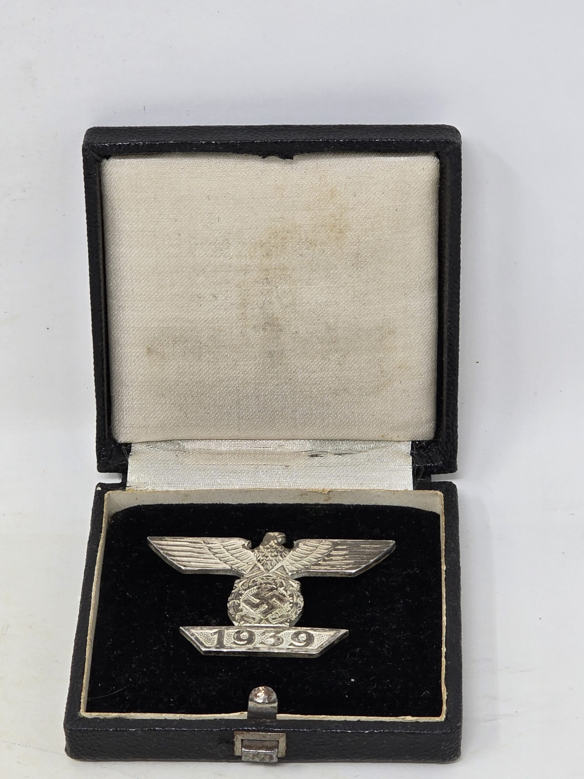 Great example of a cased spange for the iron cross first class, tombak example. The maker is Mayer. Spange shows light finish loss to areas of the rear, and light wear to the case. Overall a very collectible piece, COA accompanies.