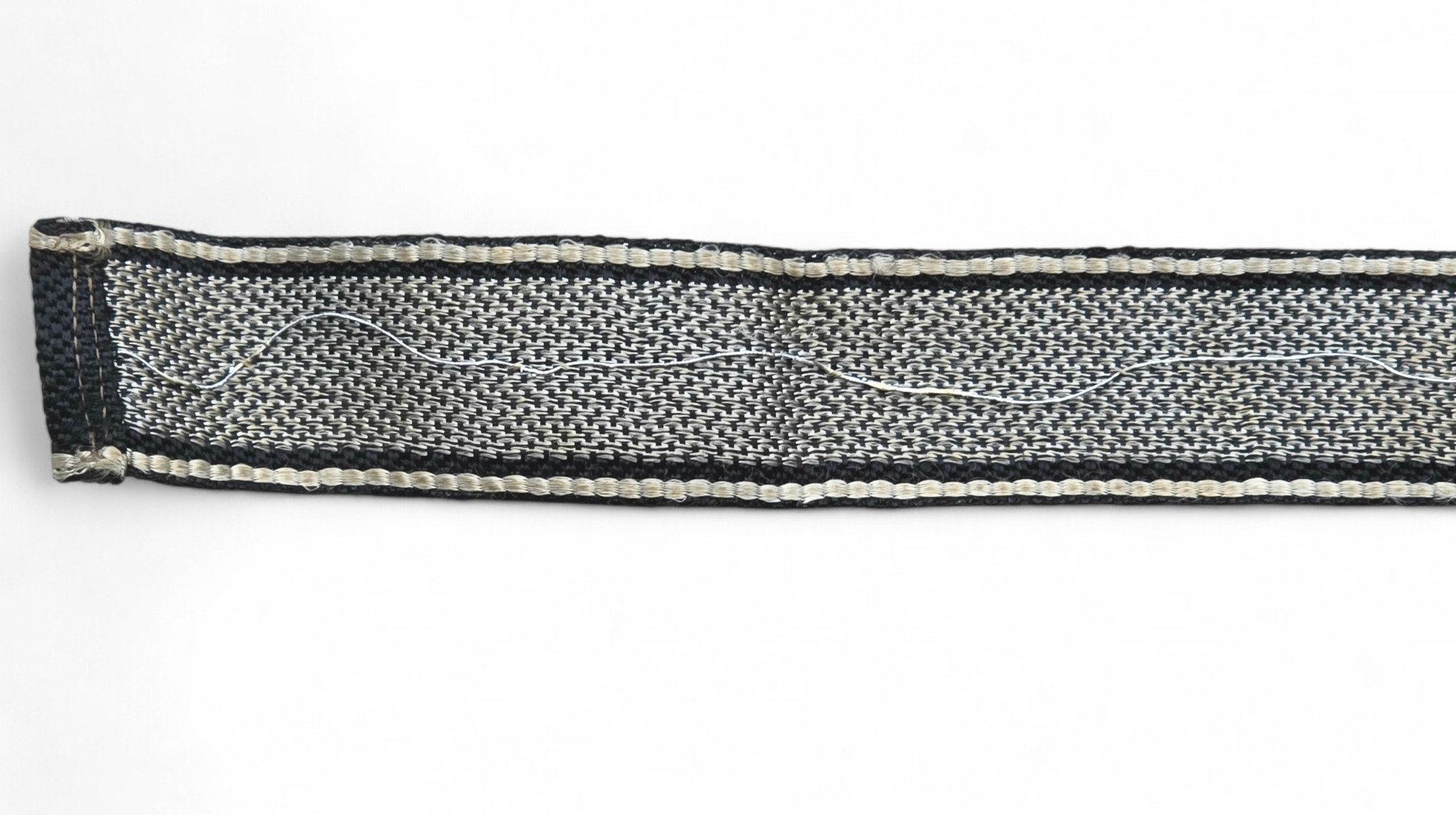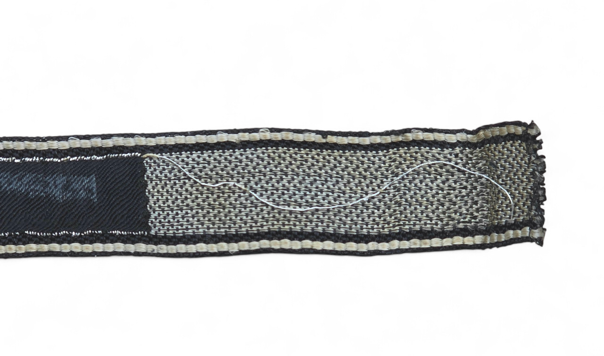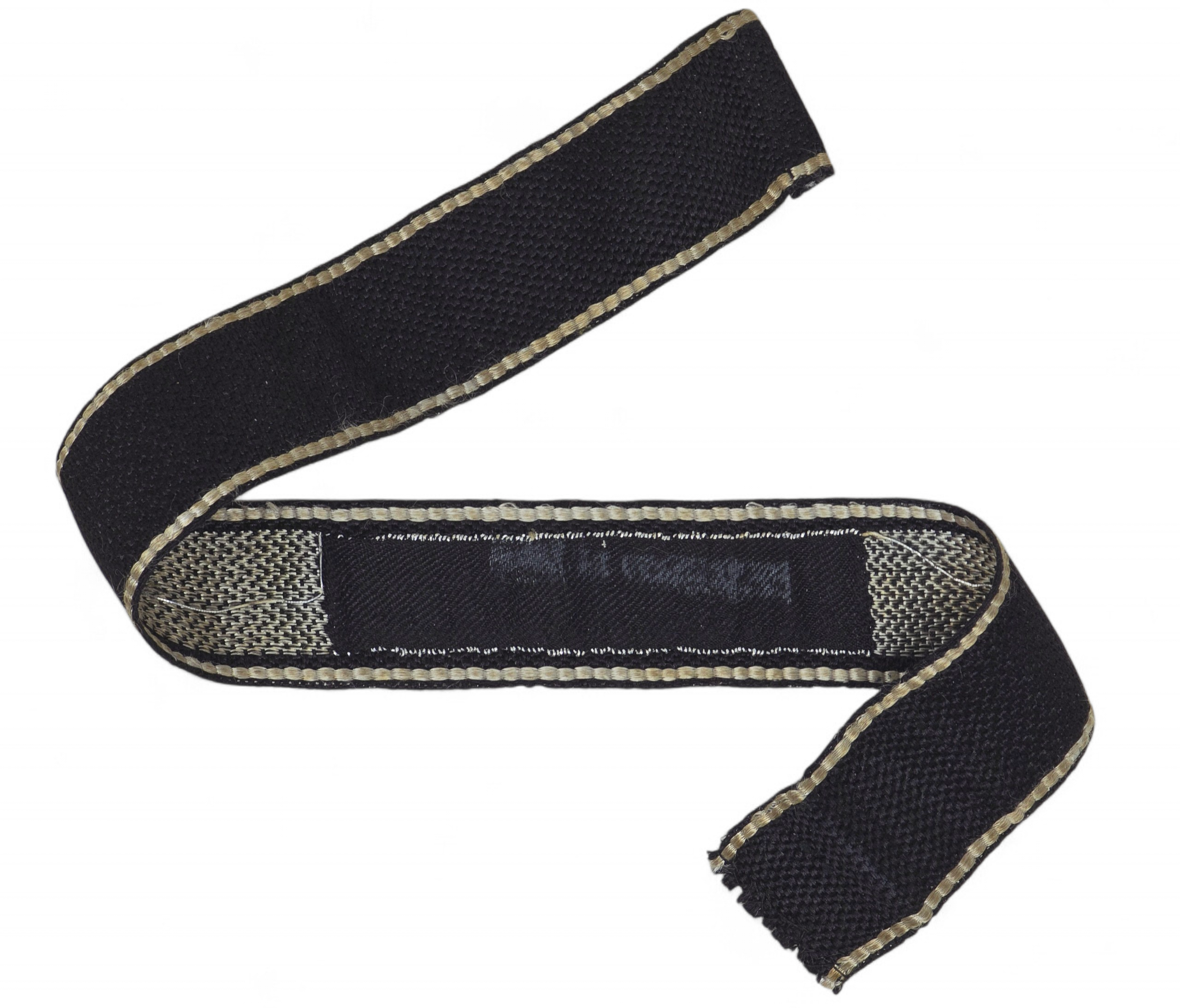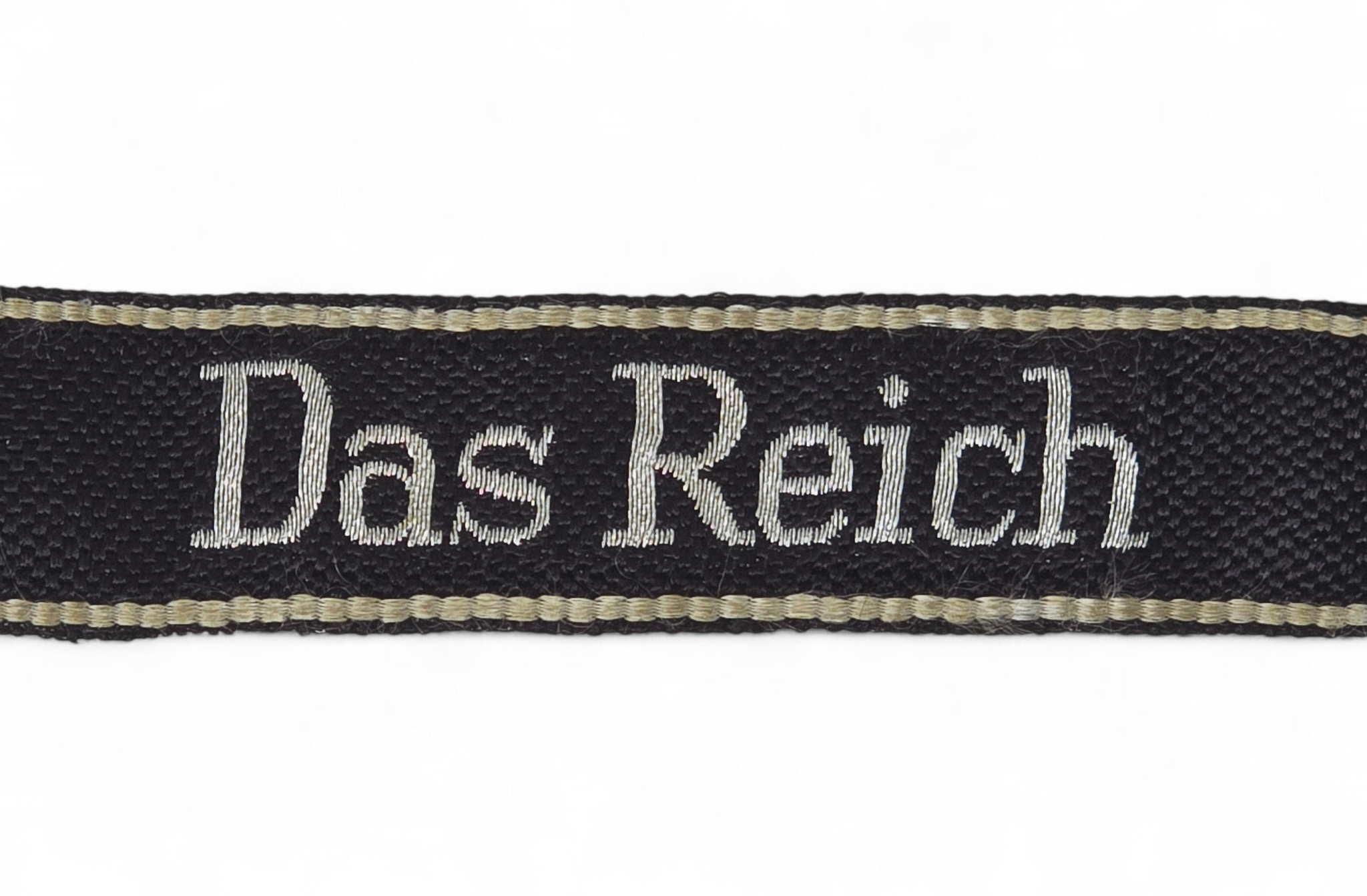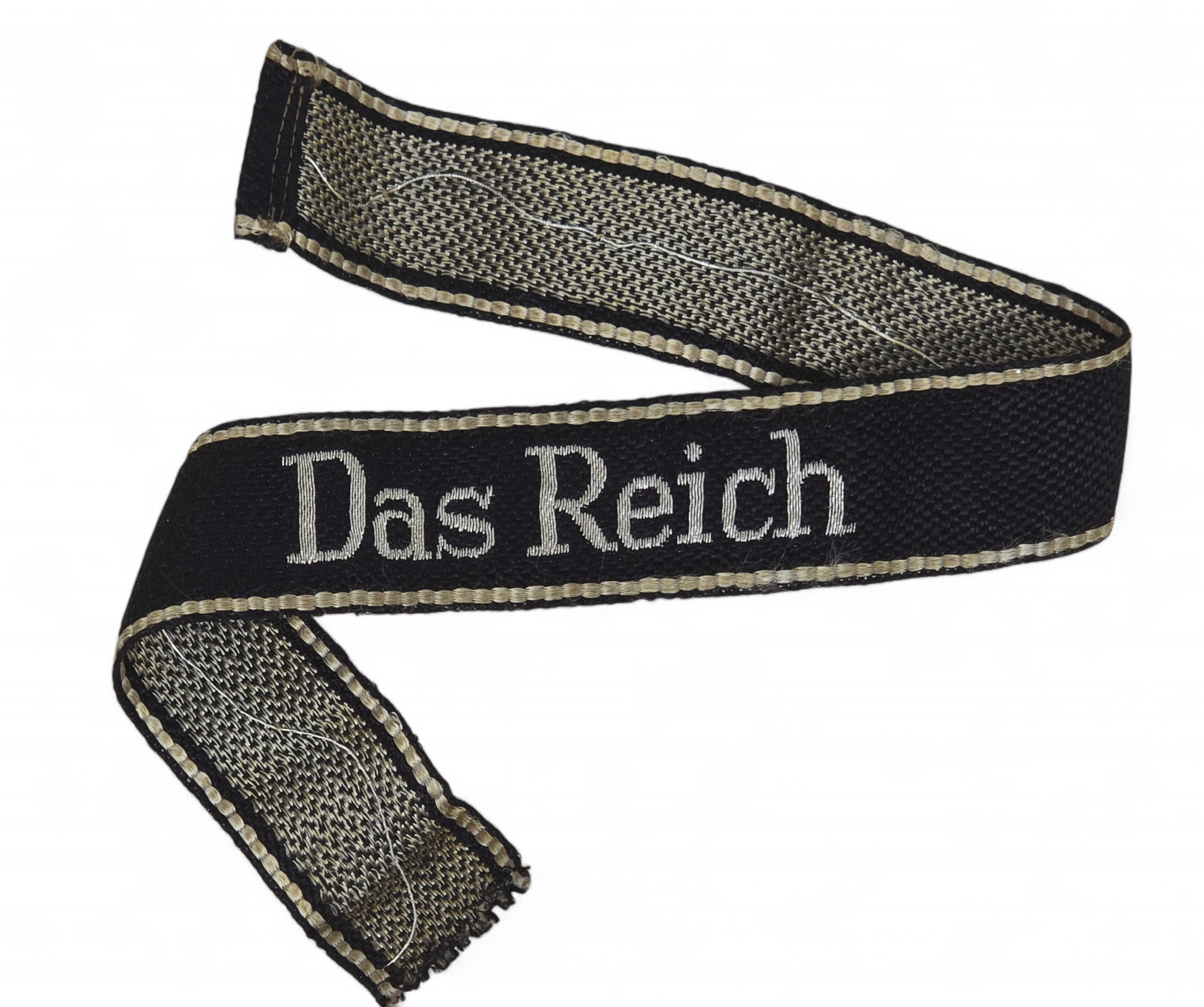 This is a killer example of a uniform- removed second SS panzer division ,,Das Reich” cufftitle in flatwire, with rayon edges. The title shows minimal service wear, and overall is in excellent condition. Cut and folded at one end to accommodate stitching onto the uniform sleeve. A highly desirable example for the top SS insignia collection. COA accompanies.