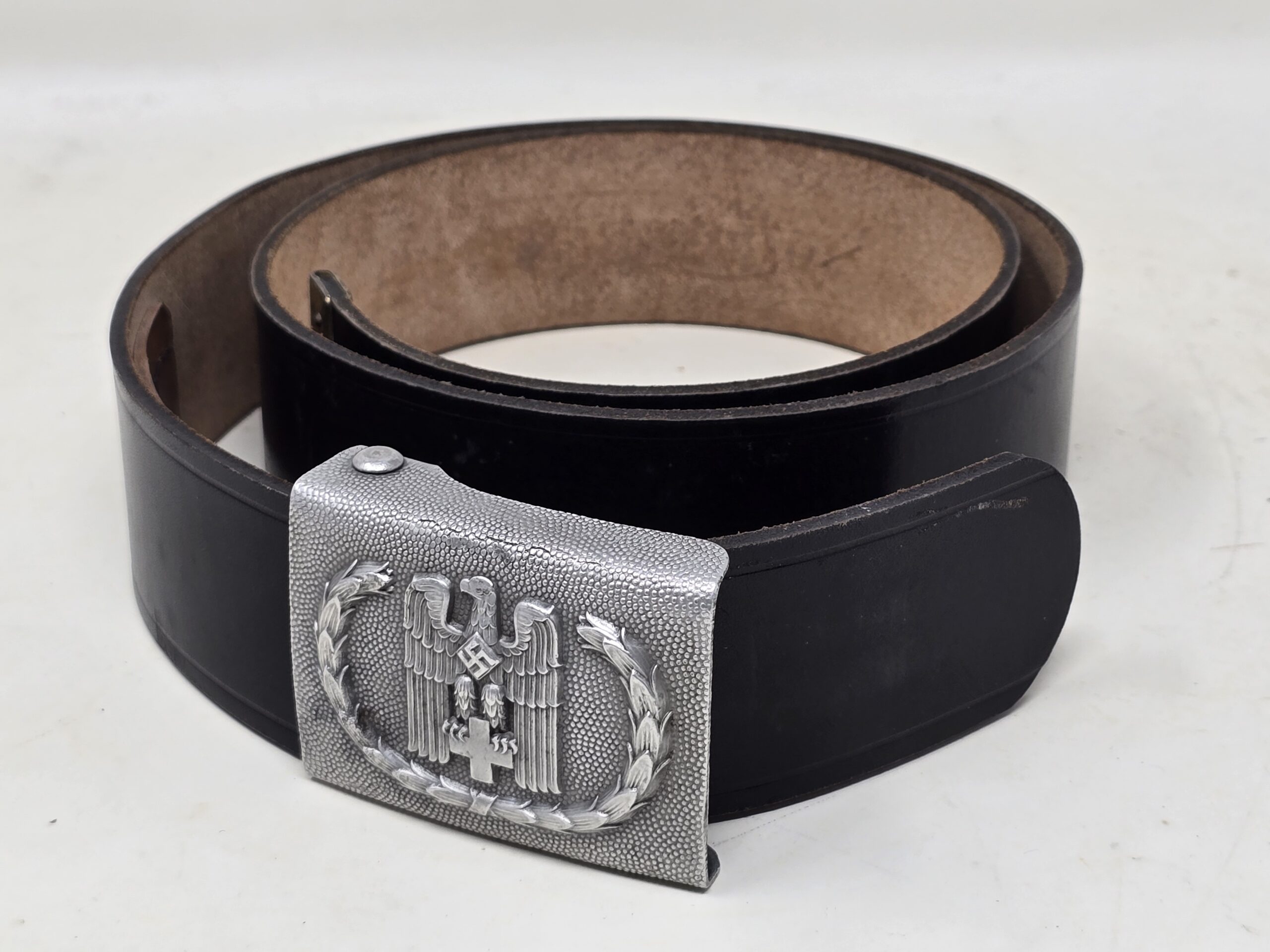 This is a very nice condition DRK (deutsche rote kreuz) belt and buckle ensemble. Marked “Ges.Gesch” and complete with matching proper black belt. All in fine condition, ready for the display.