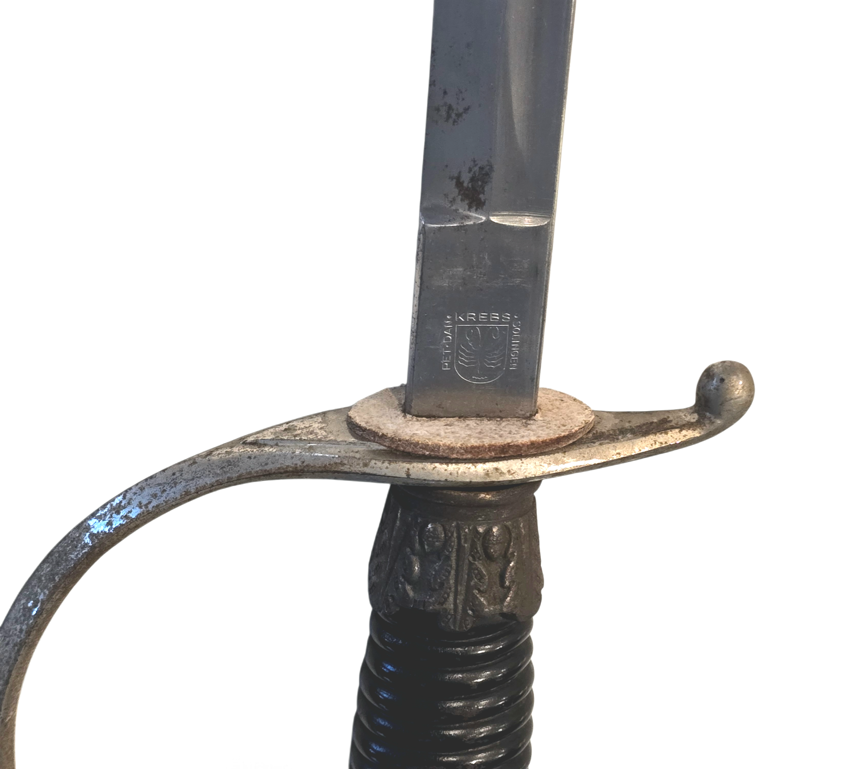 This is an SS Degen by Krebs, Solingen. The piece is in overall untouched condition since the war, showing storage patina throughout. The blade is nice. Pictures show the condition and details overall. Great for the display. COA accompanies.