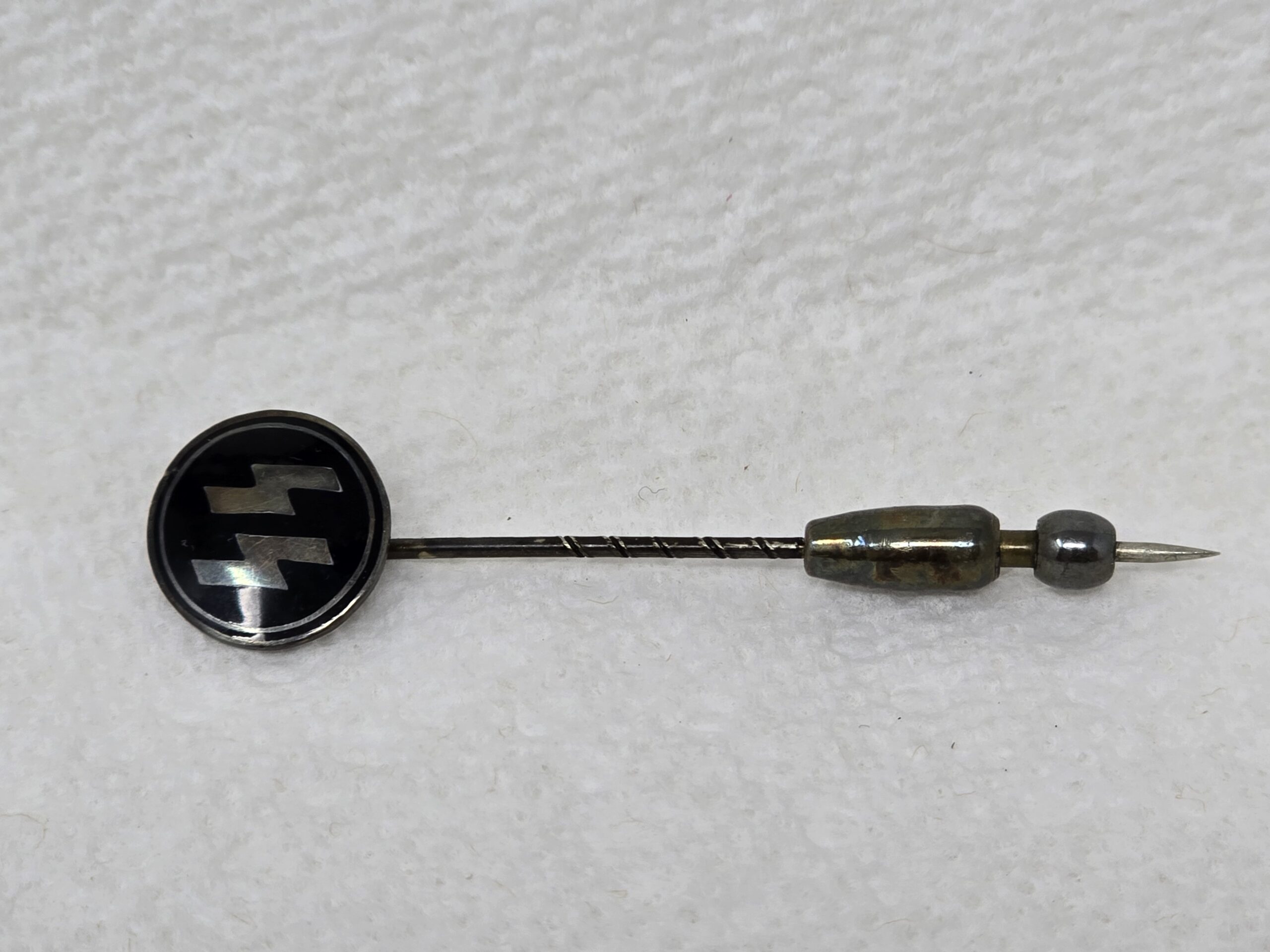 This is a fine example of the SS honor pin, complete with it’s keeper. The pin shows light use overall, is well marked, and has no major issues with the enamel or finish. A great addition to the display.