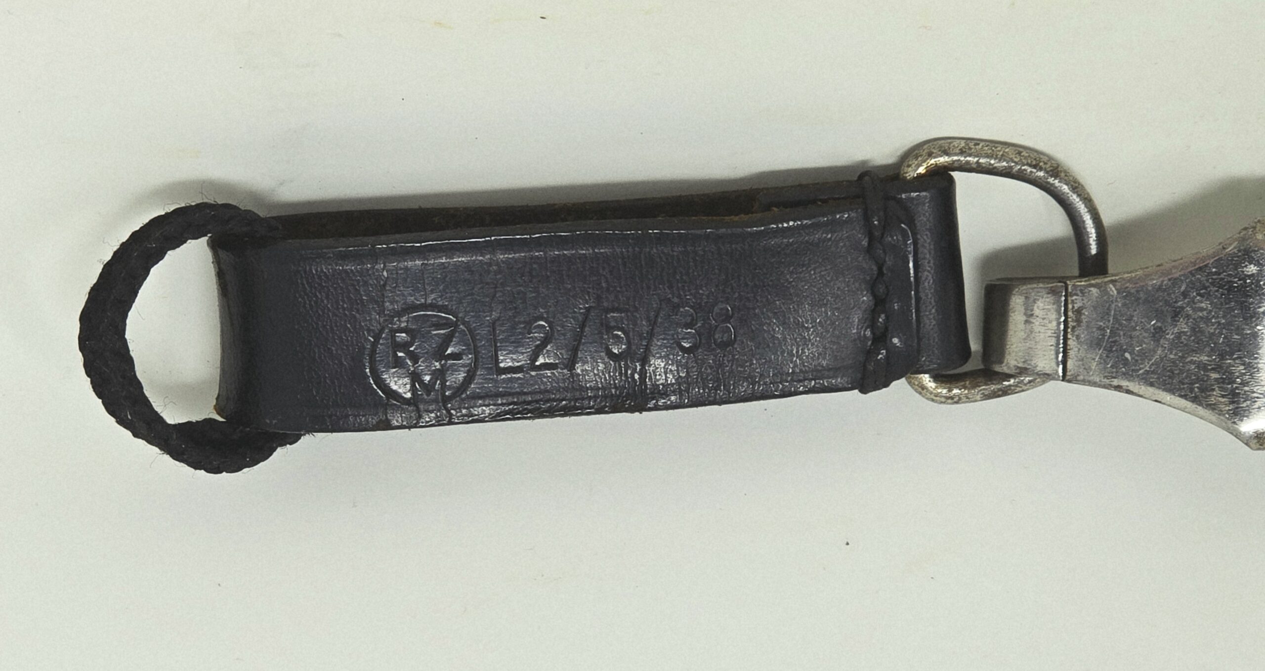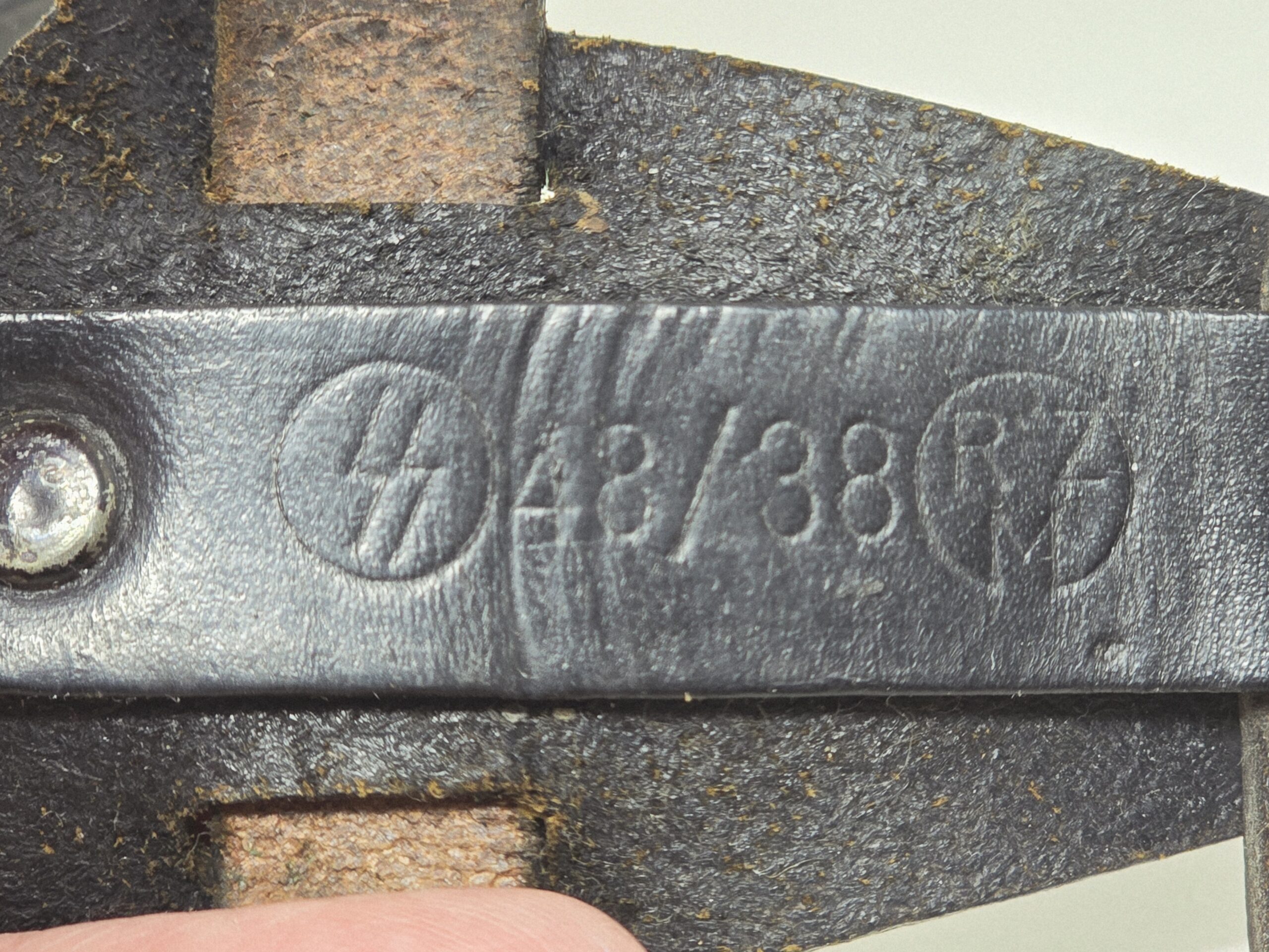 This is an excellent condition vertical dagger hanger, SS-RZM marked. The hanger is complete, with no weakness issues or damage. A must have for the advanced dagger collection. COA accompanies.