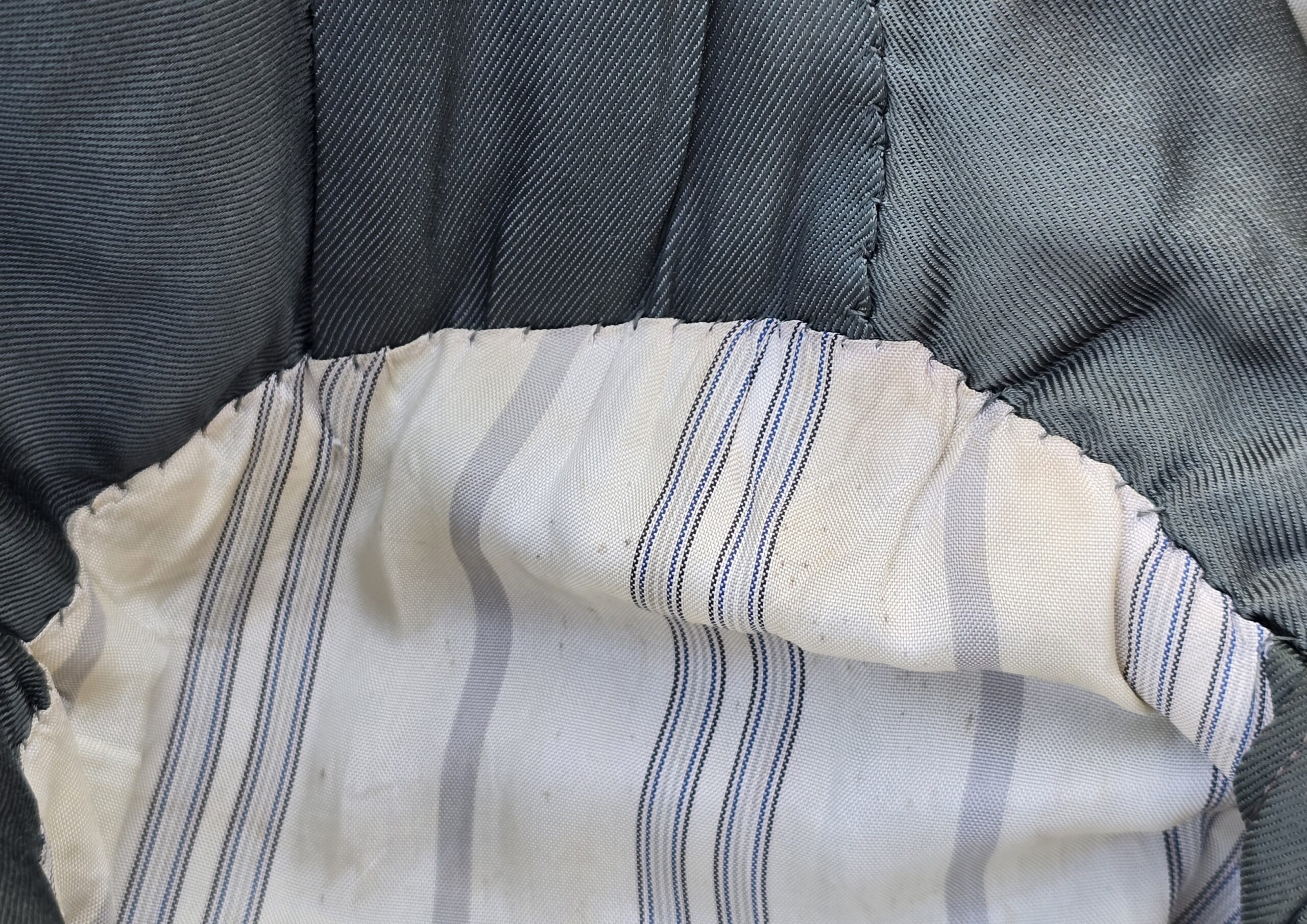 As collections change hands these days, some very fine items are coming out, that a decade ago were too rare to even contemplate finding. This falls in that category, as an M36 tailored piece, rank of SS- Obersturmführer, Deutschland regiment. It has updated 1940 style shoulder straps, yellow piped for signals, but still bears the SS-VT style “SS1” collar tab and matching Ostuf. rank tab. The sleeve eagle is an army pattern in bullion– the photographic record shows instance after instance of SS-VT officers wearing Army sleeve Eagles, mainly because in the early days, many of them held an Army rank status as well. The cuff title is flatwire classic Gothic lettering. The piece is free from damage. It is looped for iron cross first class with spange, as well as another award. And it also has the old fighter’s Chevron. The badging appears to be period correct with some repair stitching along the top edge of the sleeve eagle. Overall, a great and highly sought-after piece for the collection, COA Accompanies.