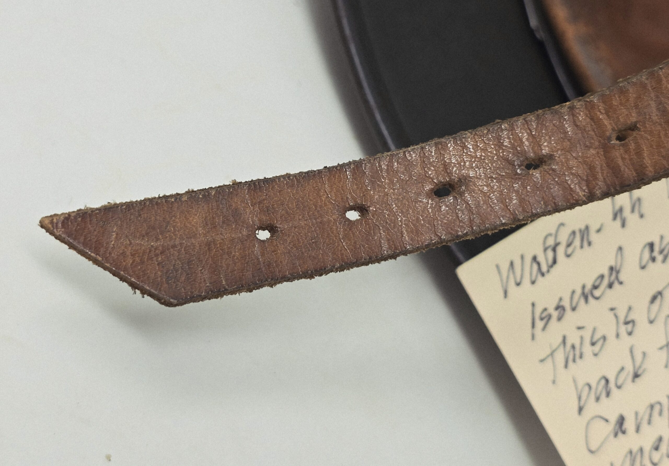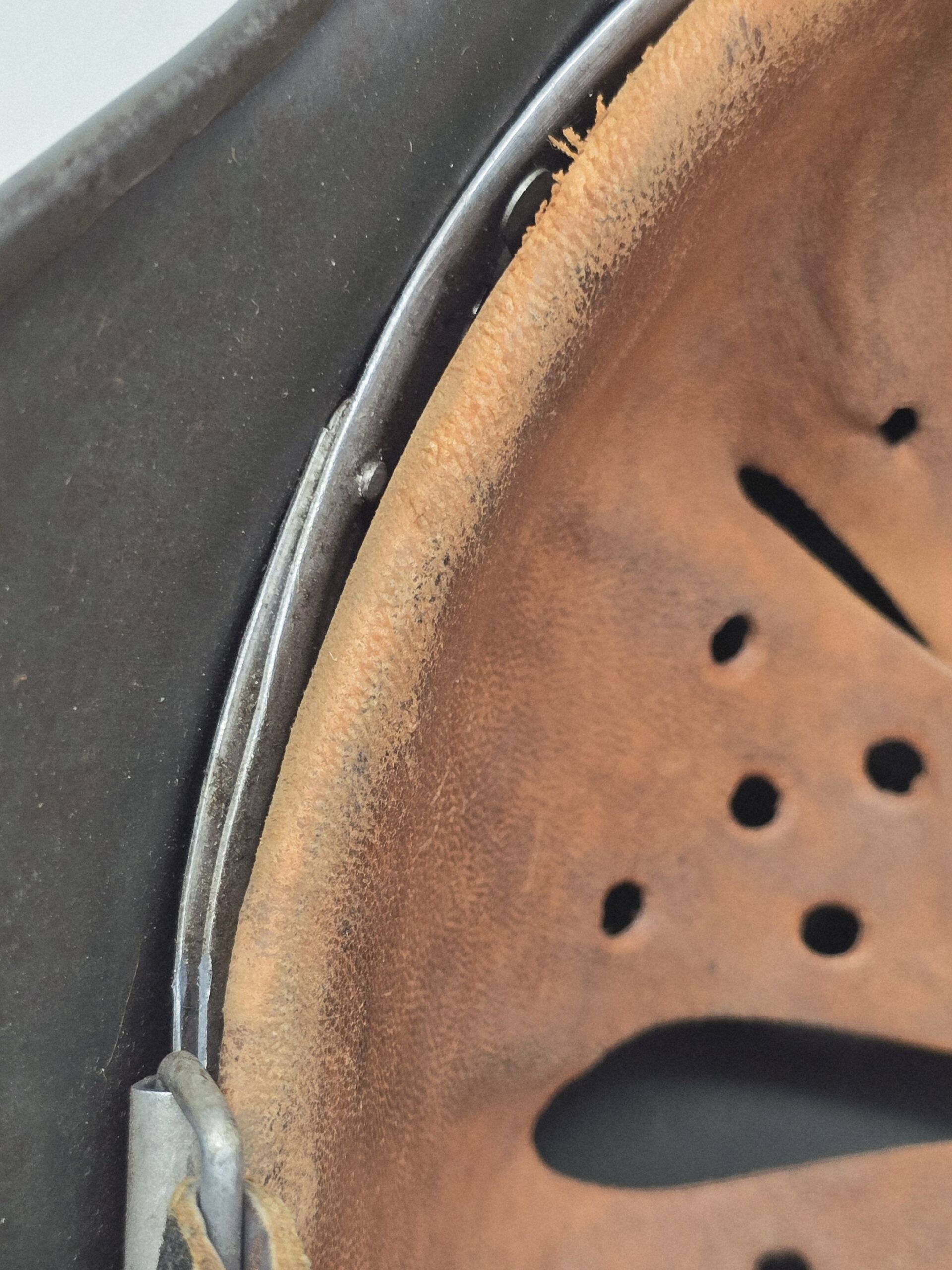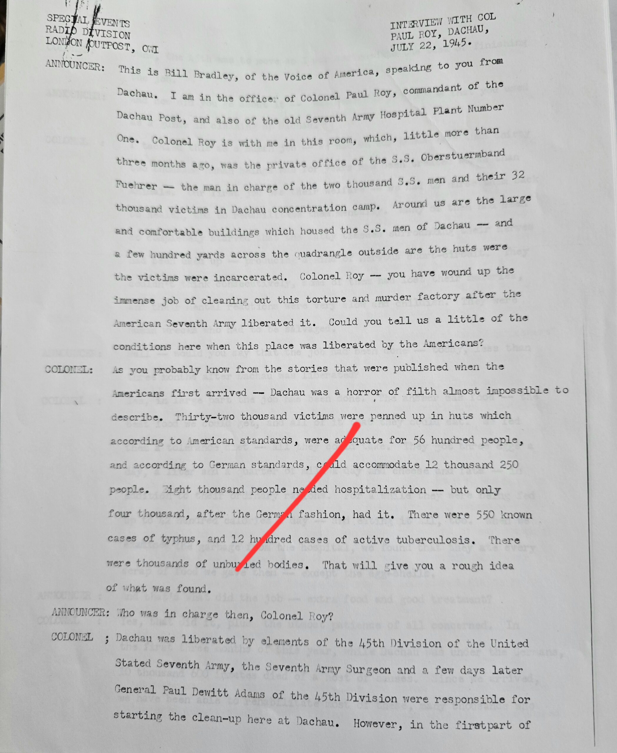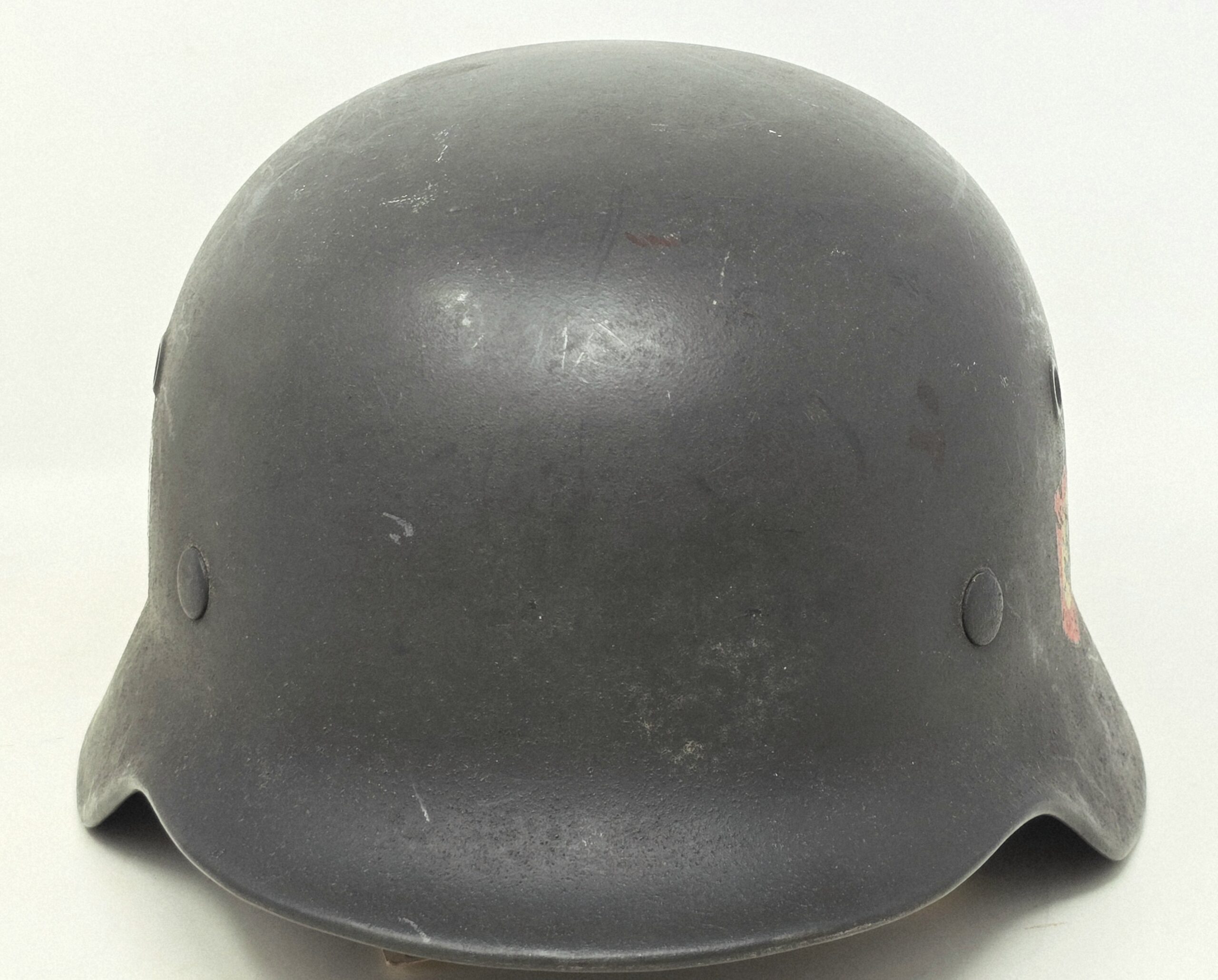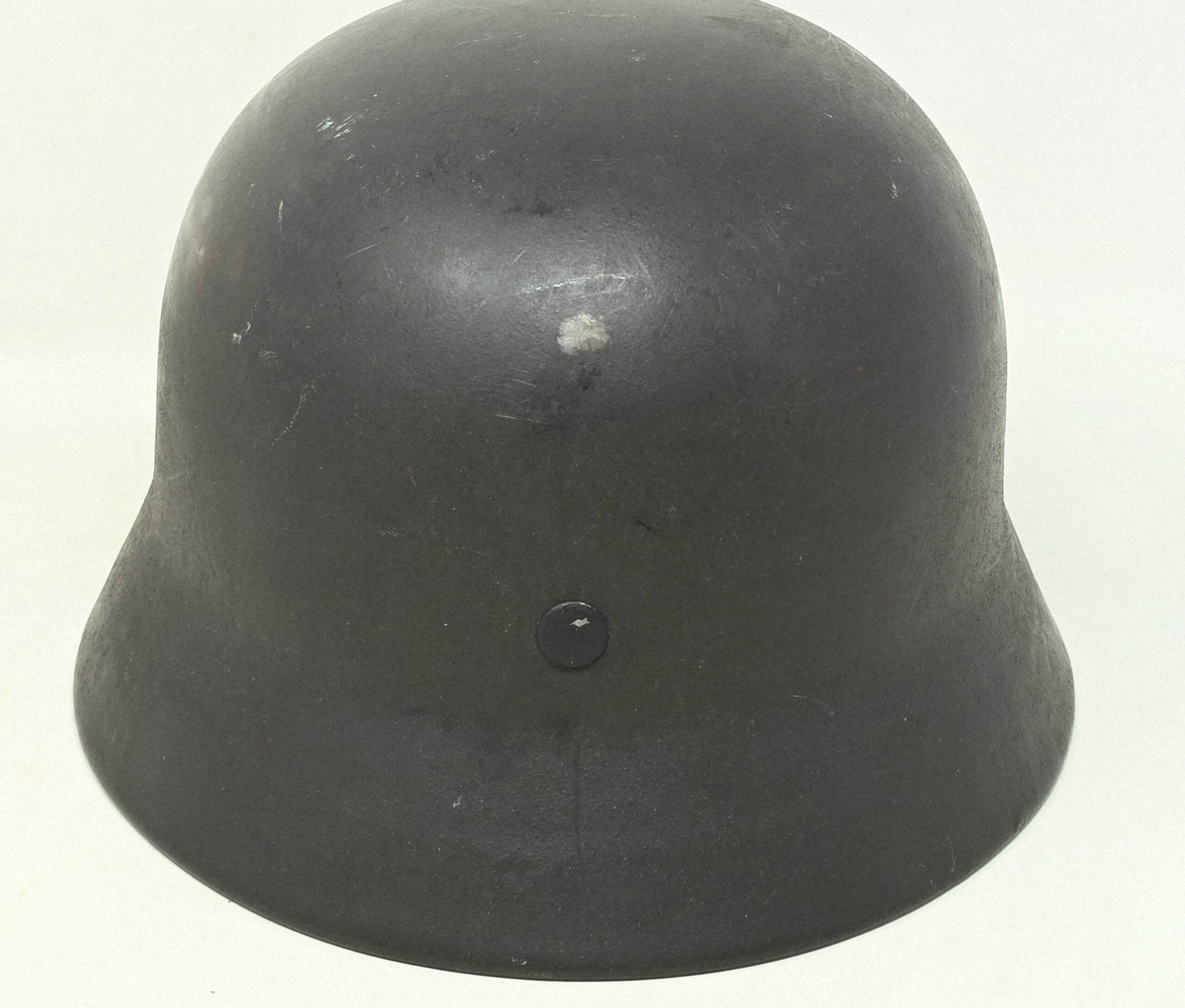 This helmet was one of two brought back by Colonel Paul Roy, US Army, the senior medical officer in charge of the medical rehabilitation of the thousands of Dachau inmates at the time of liberation in 1945. Colonel Roy’s radio interview transcript printout is included with this helmet.