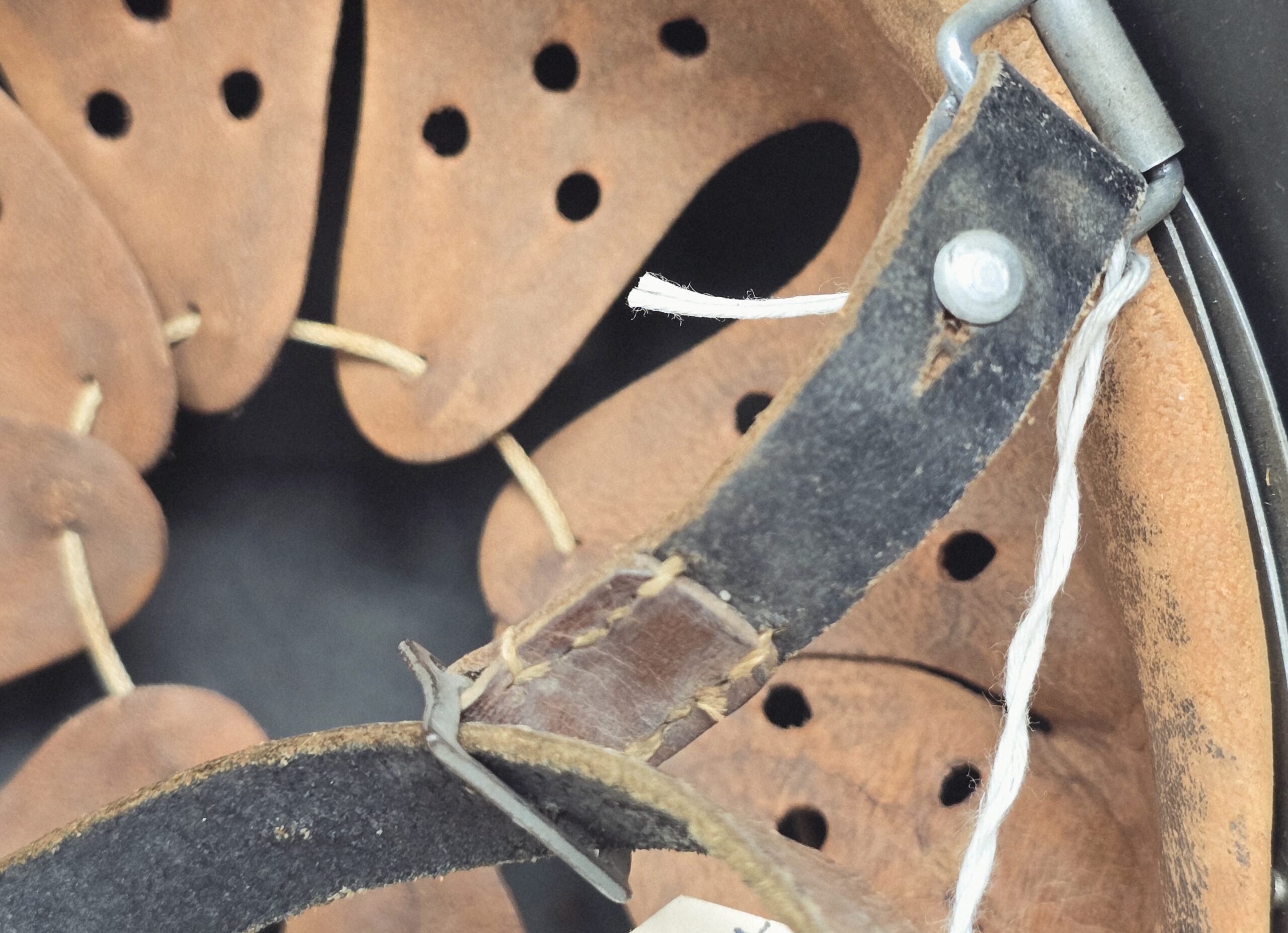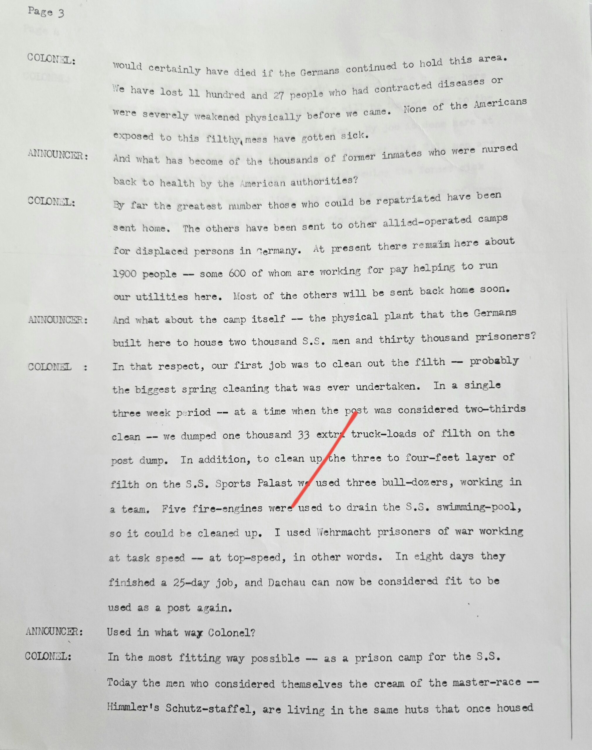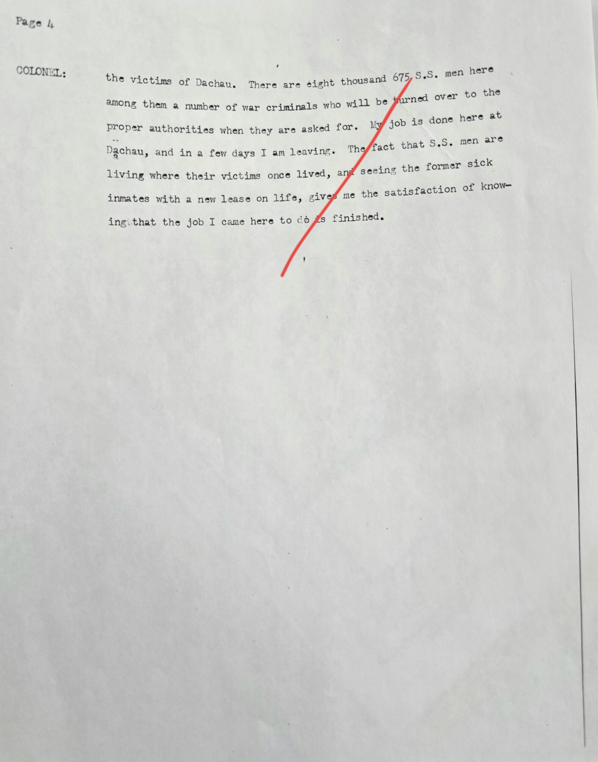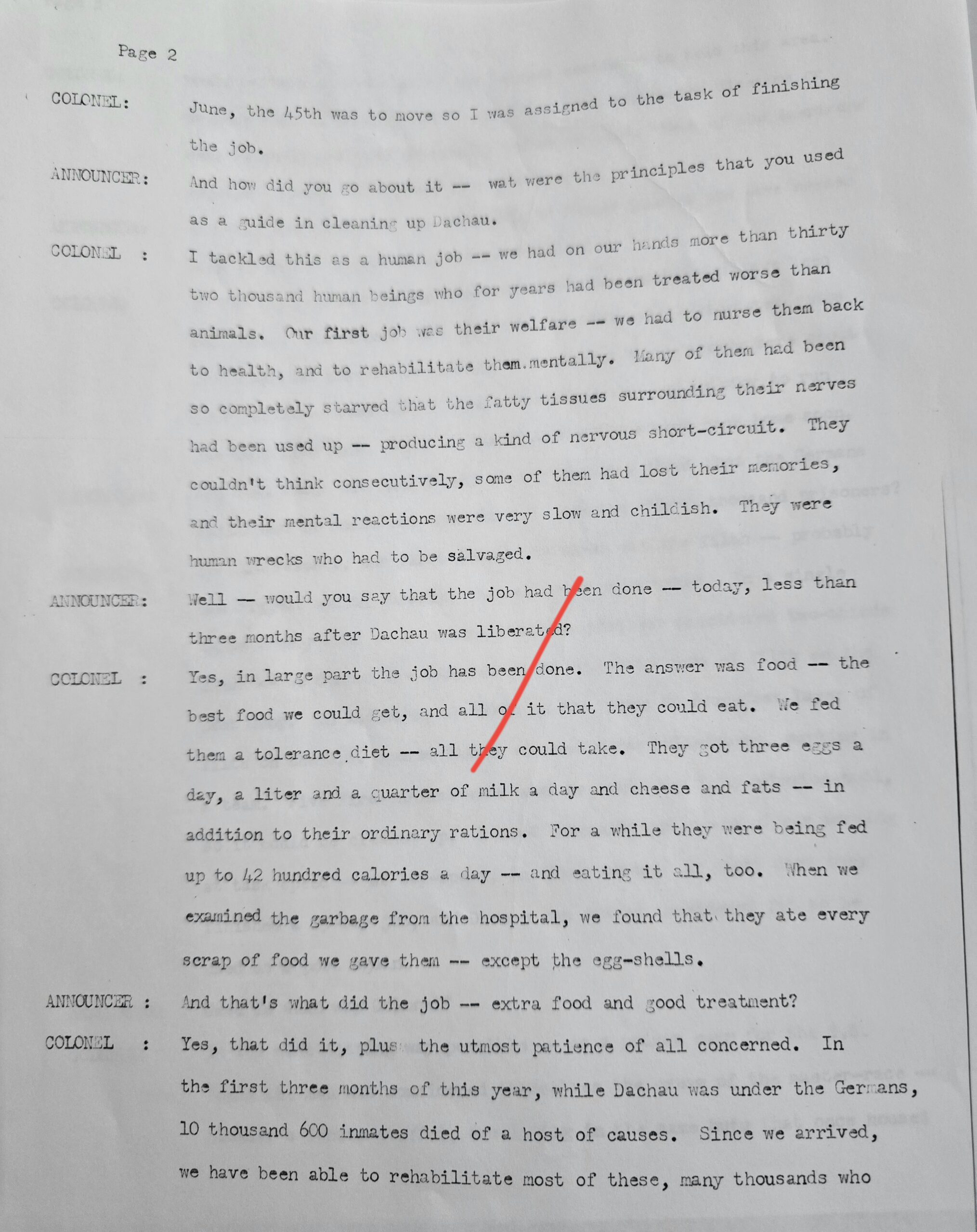 This helmet was one of two brought back by Colonel Paul Roy, US Army, the senior medical officer in charge of the medical rehabilitation of the thousands of Dachau inmates at the time of liberation in 1945. Colonel Roy’s radio interview transcript printout is included with this helmet.