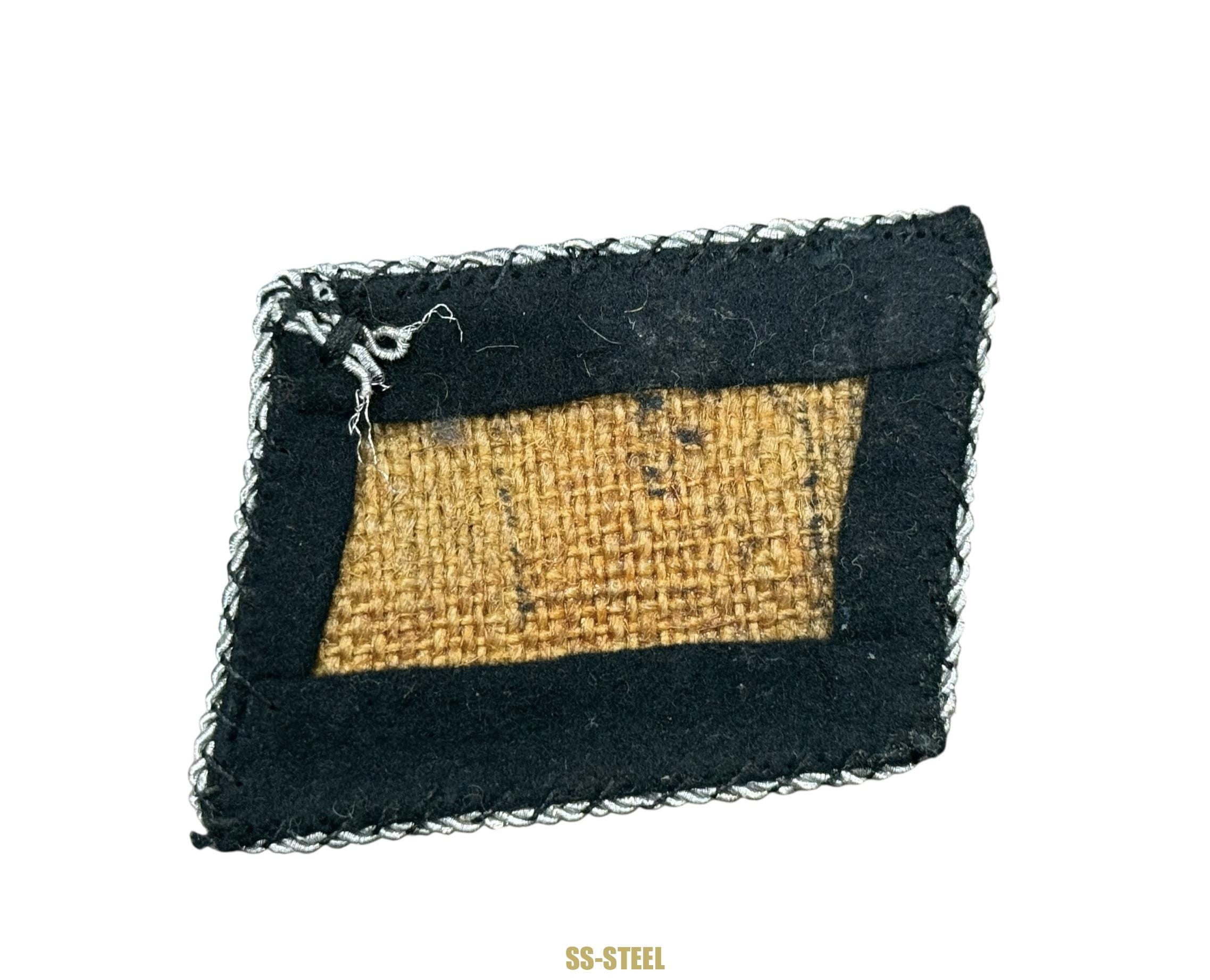 This is a beautiful example of a rare SS “n”collar tab for officers. The tab features fine bullion embroidery on badgecloth, on the expected buckram background, with officer’s aluminum cord edging. Missing from most collections, COA accompanies.